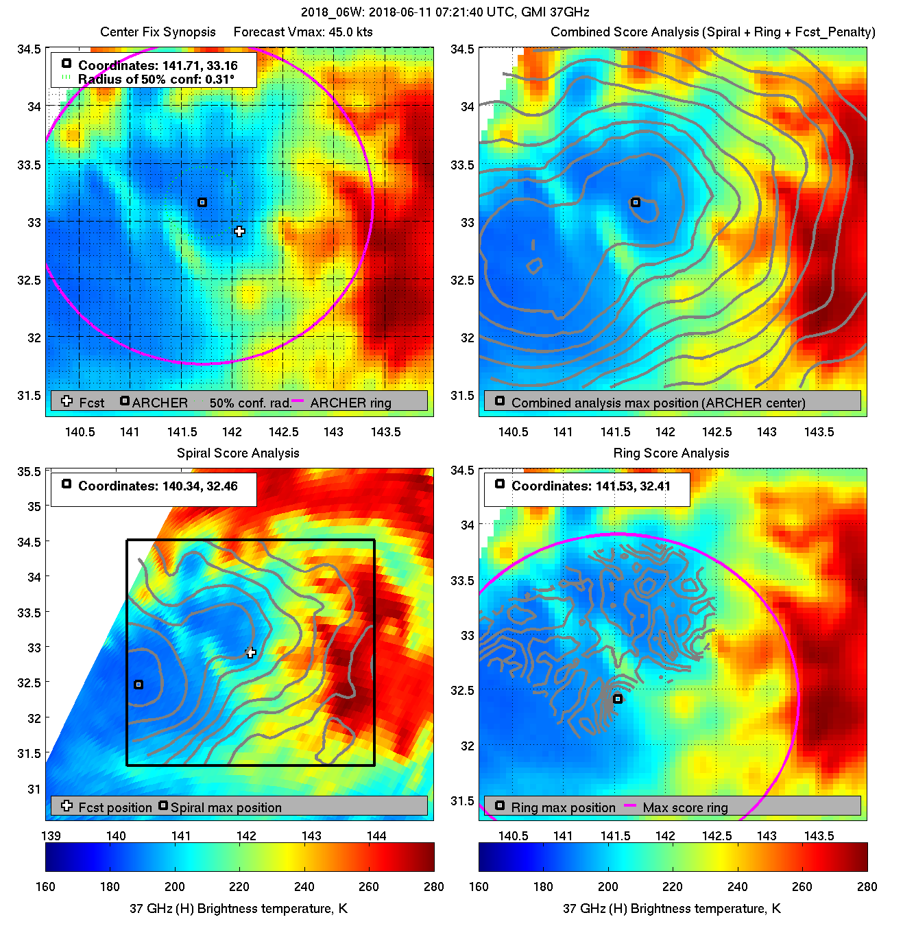 ARCHER lat/lon: Coordinates of the ARCHER algorithm, valid at the time of the observation. If no center fix could be found, then it is "***".