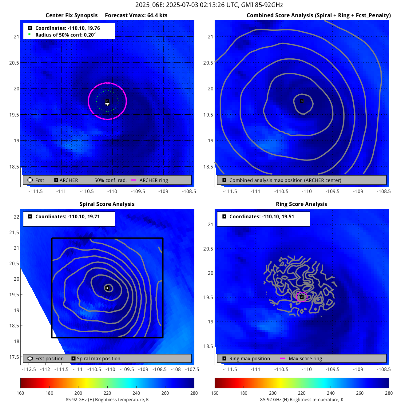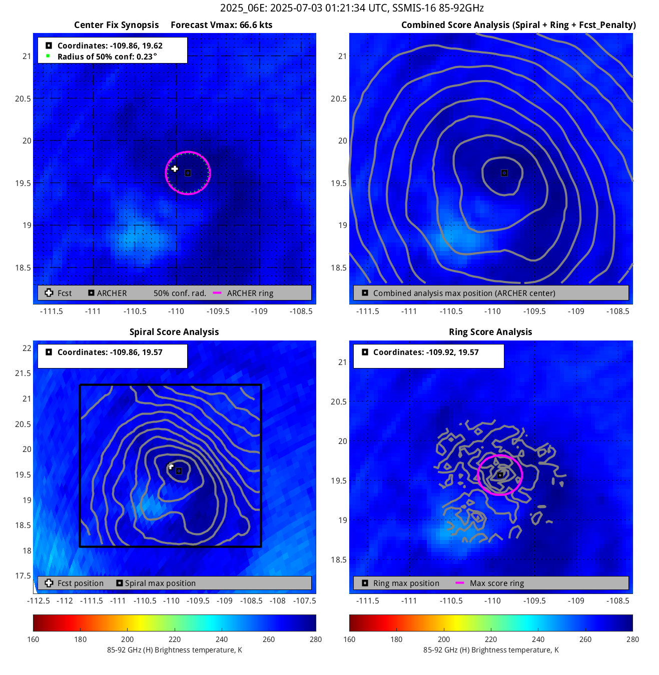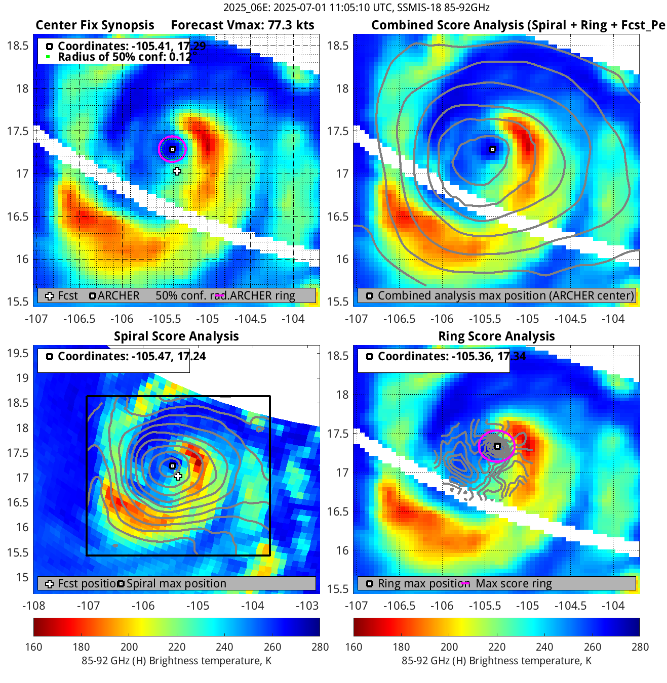 ARCHER lat/lon: Coordinates of the ARCHER algorithm, valid at the time of the observation. If no center fix could be found, then it is "***".