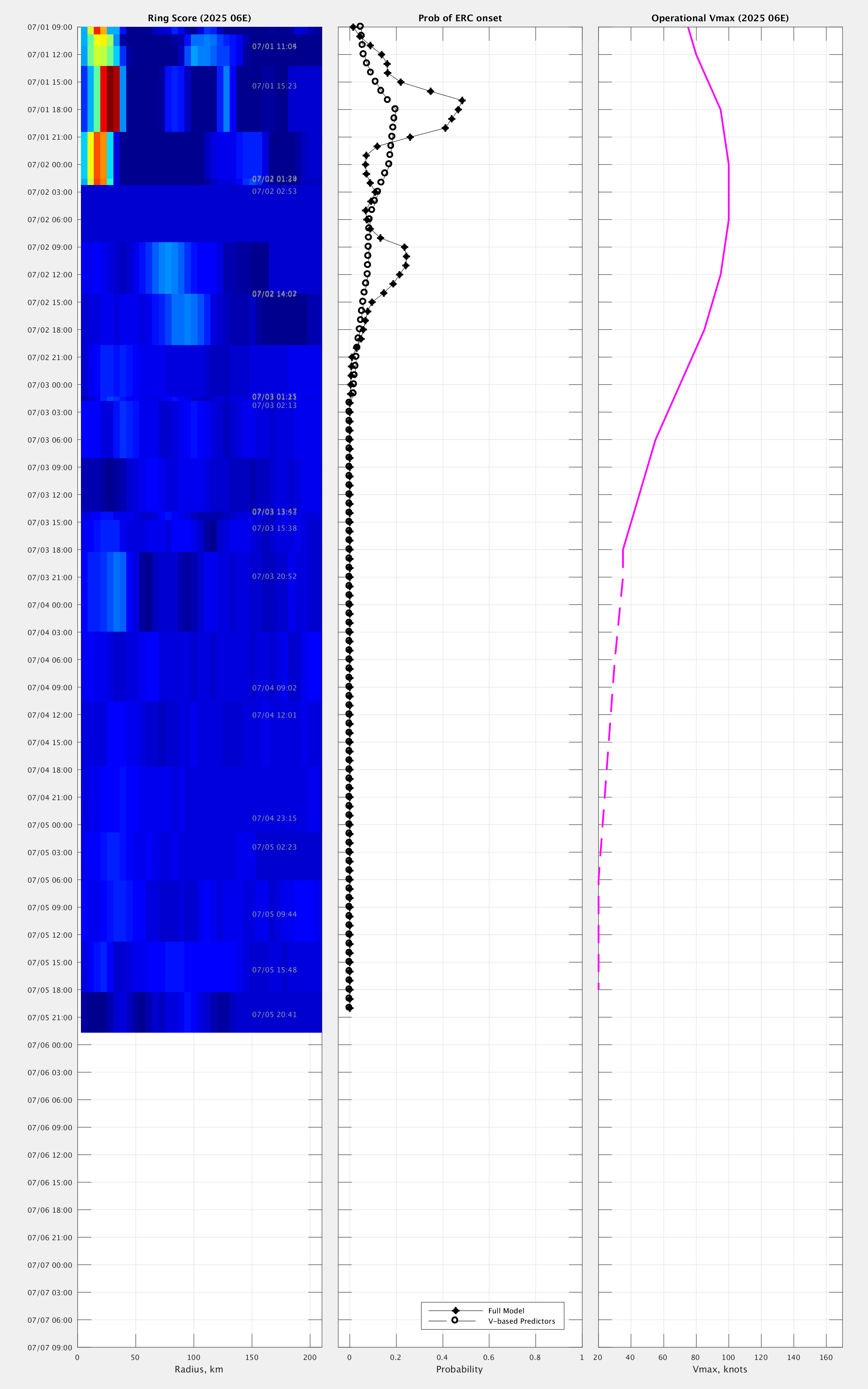 Vmax: Maximum winds listed in the forecast center analysis/forecast, *not* ARCHER.