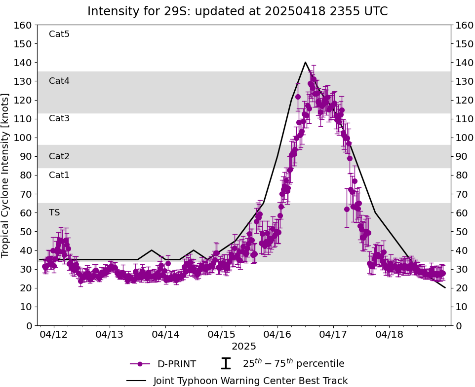 | 20250418 | 1800 UTC | 997 hPa | 30 kts | 26 kts | 33 kts |  |