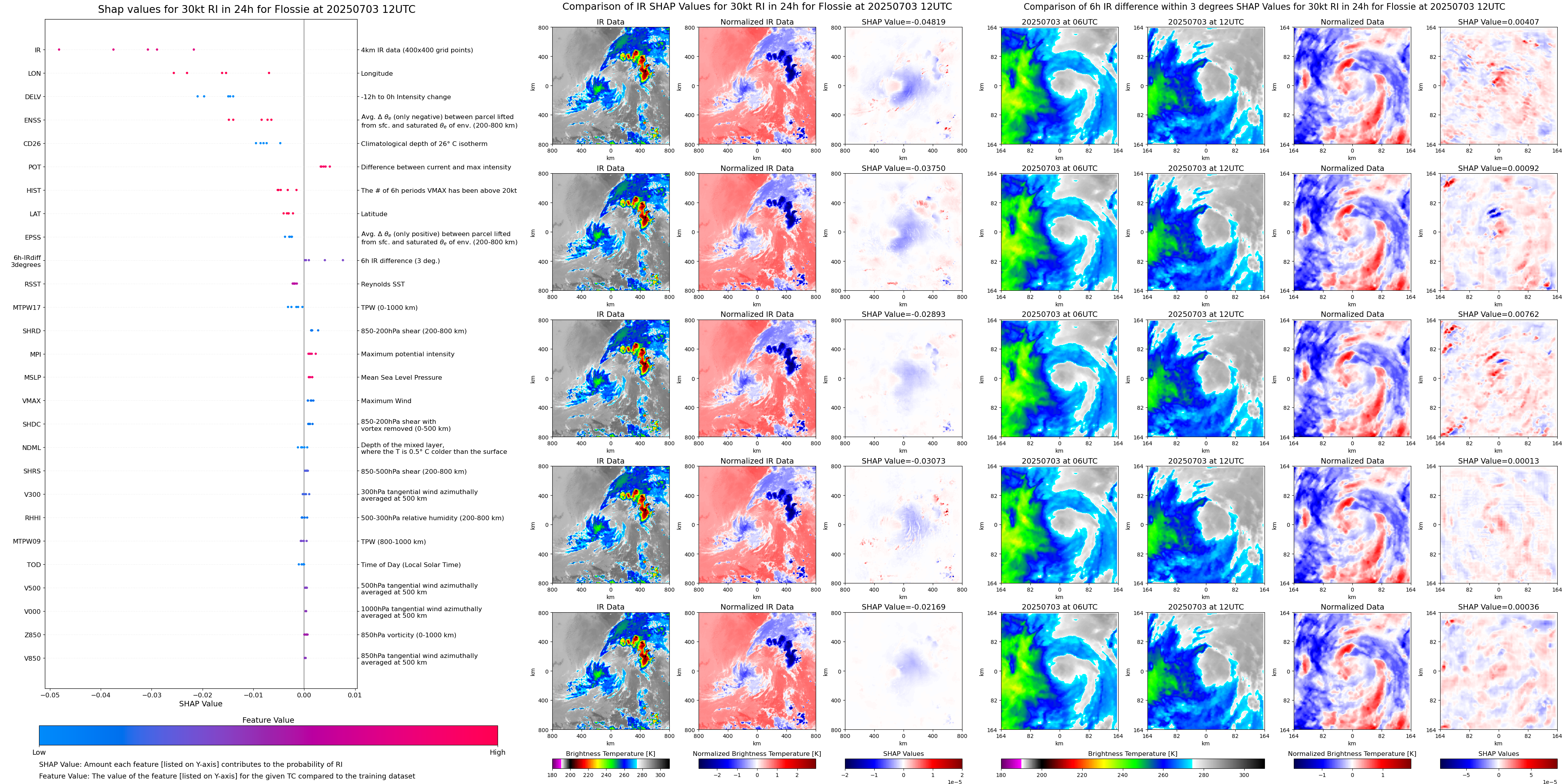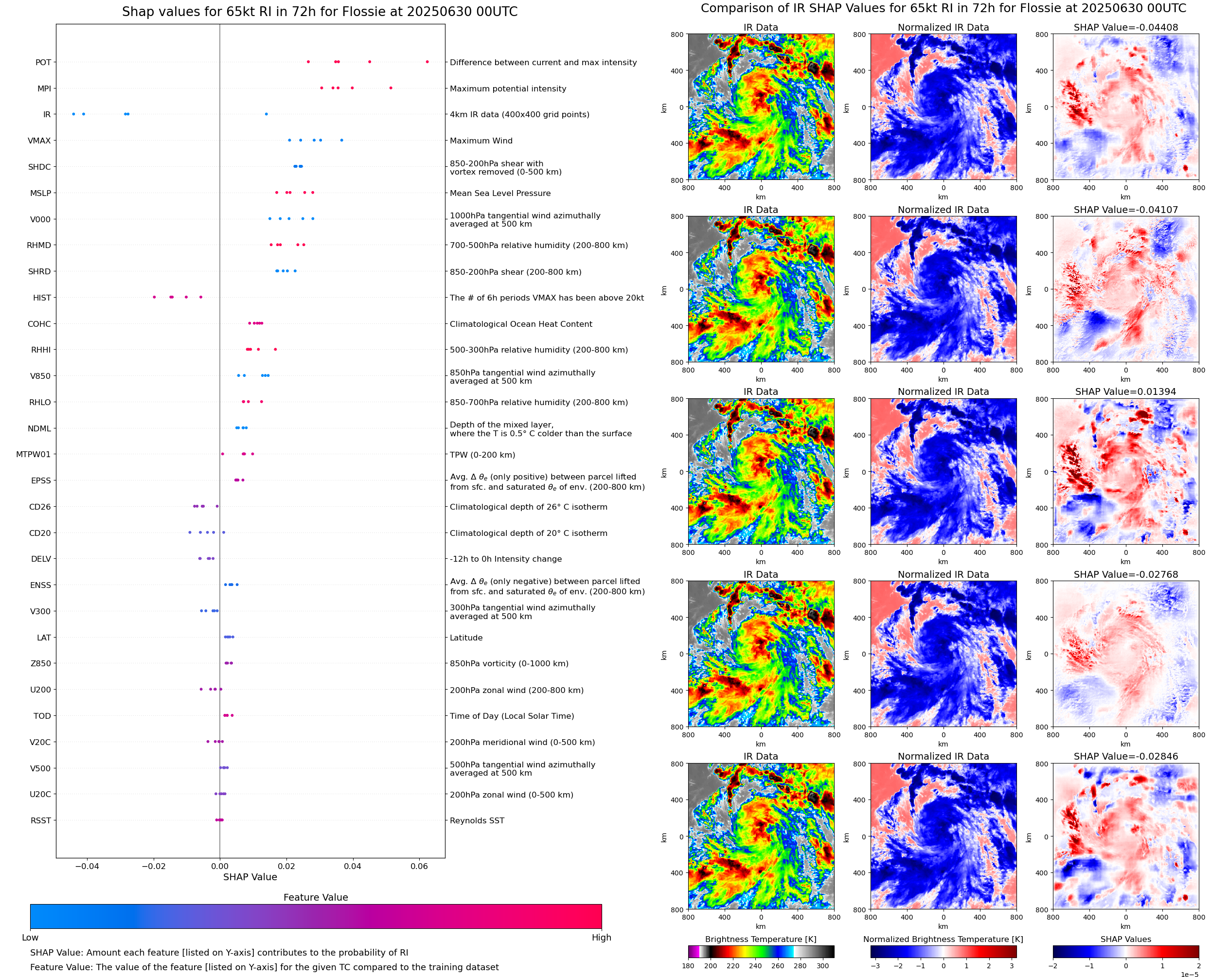 | Flossie at 07/01/25 12 UTC. Intensity = 80 kts, MPI = 143 kts |
