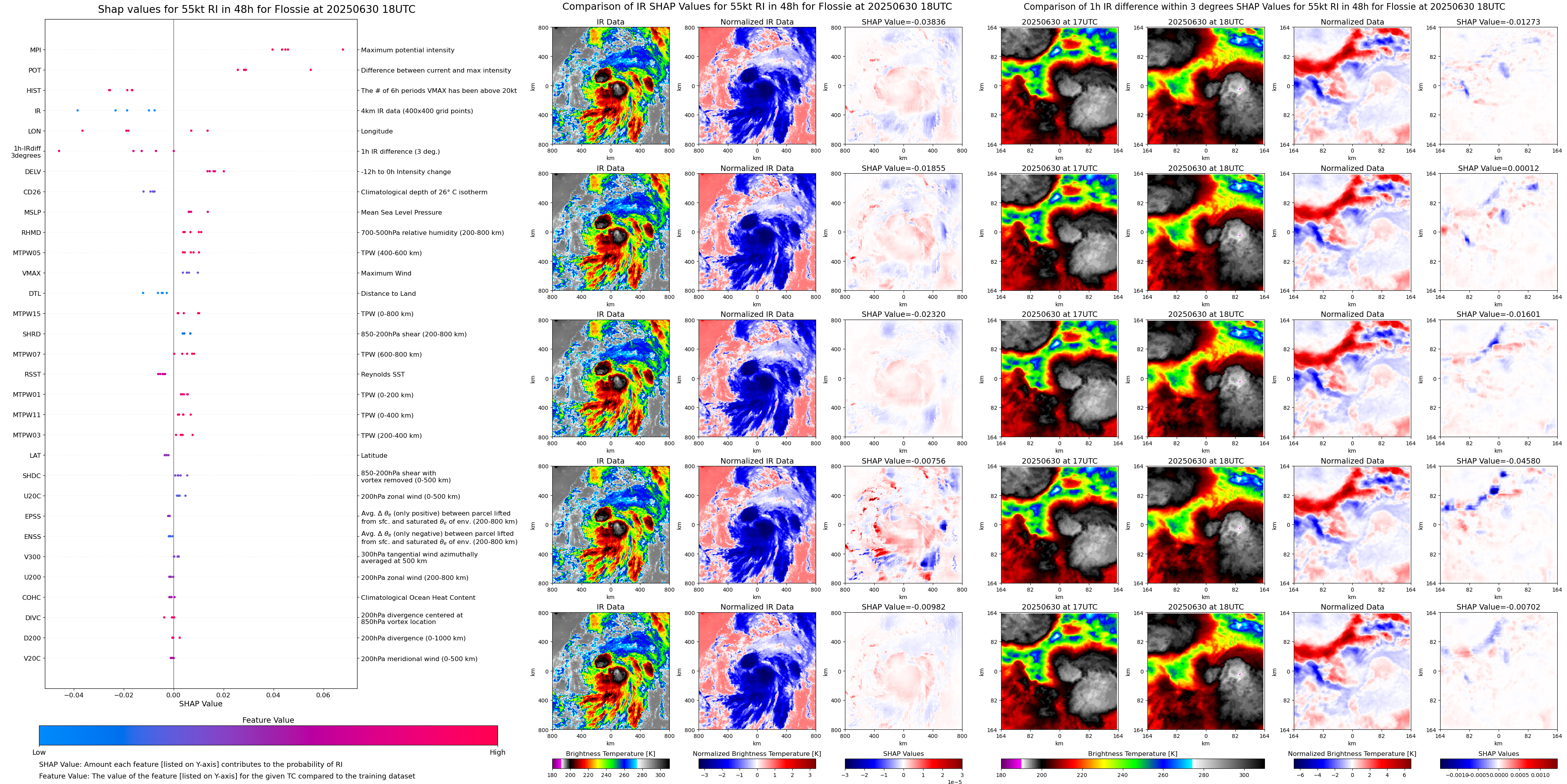 | Flossie at 06/29/25 18 UTC. Intensity = 35 kts, MPI = 150 kts |