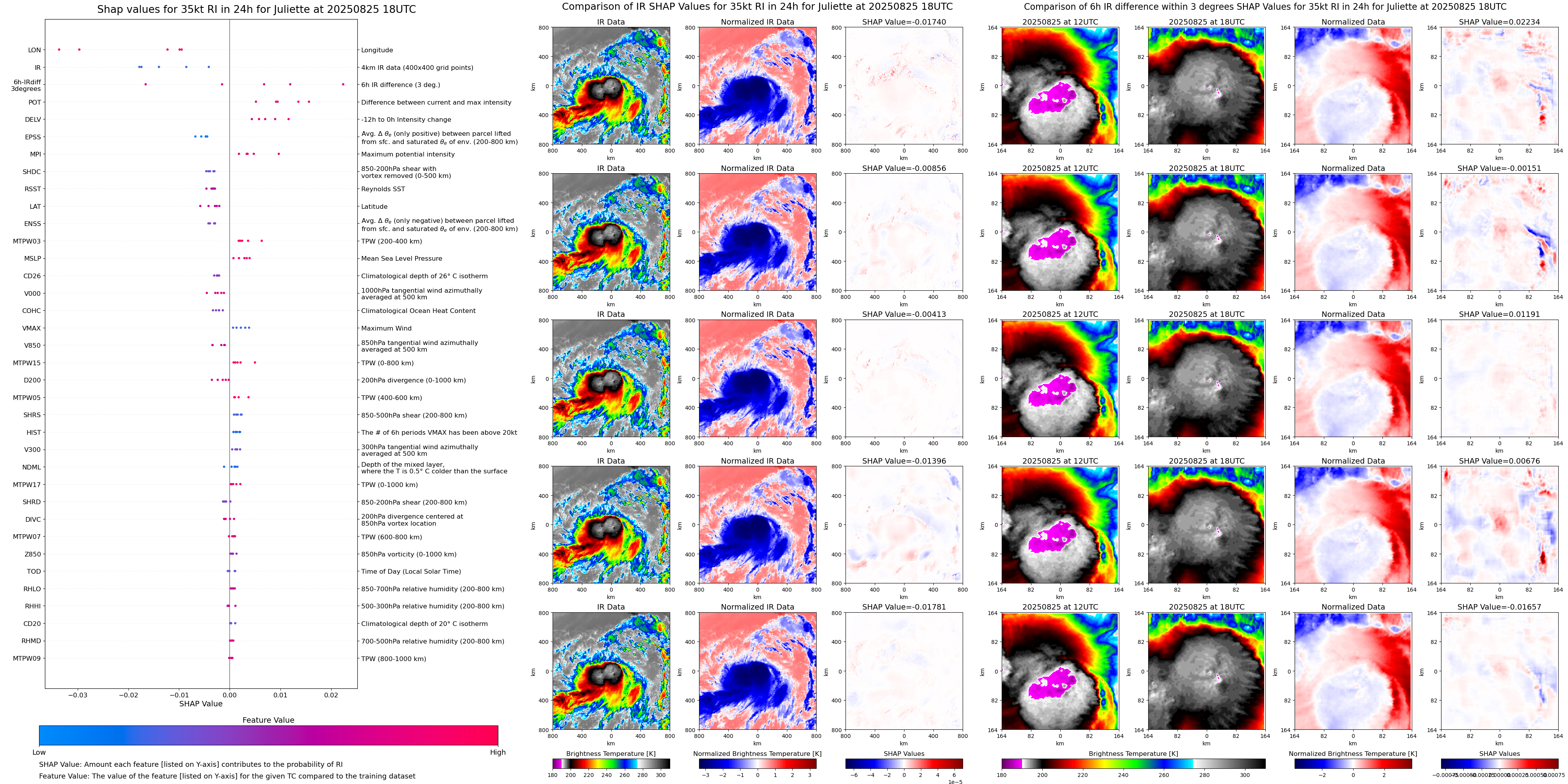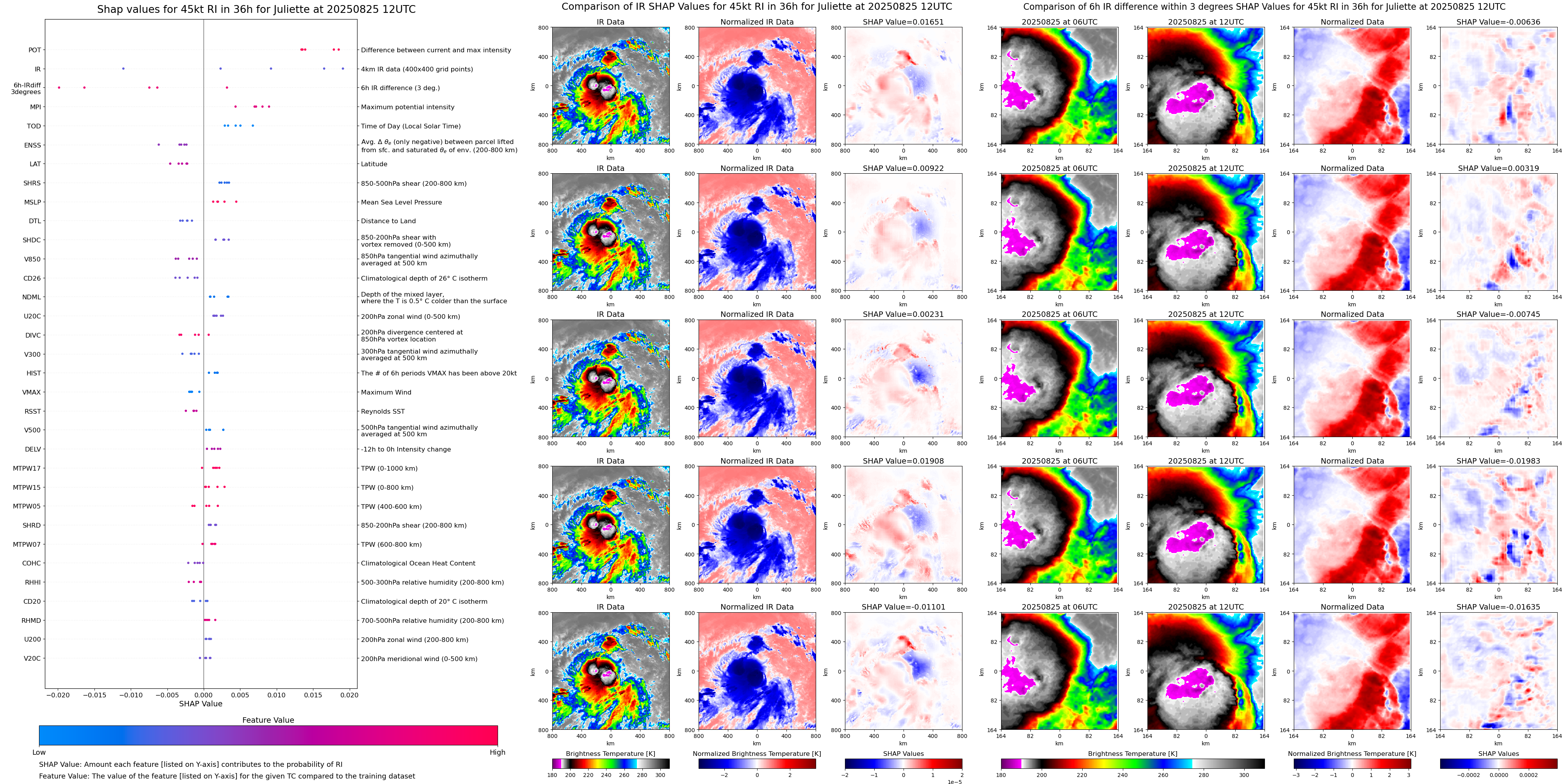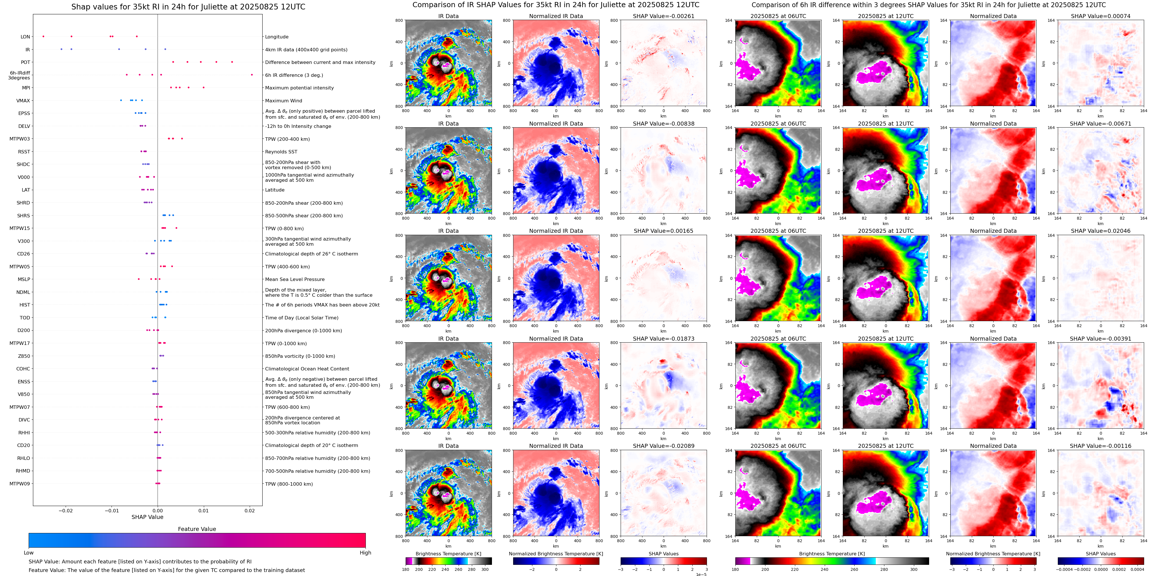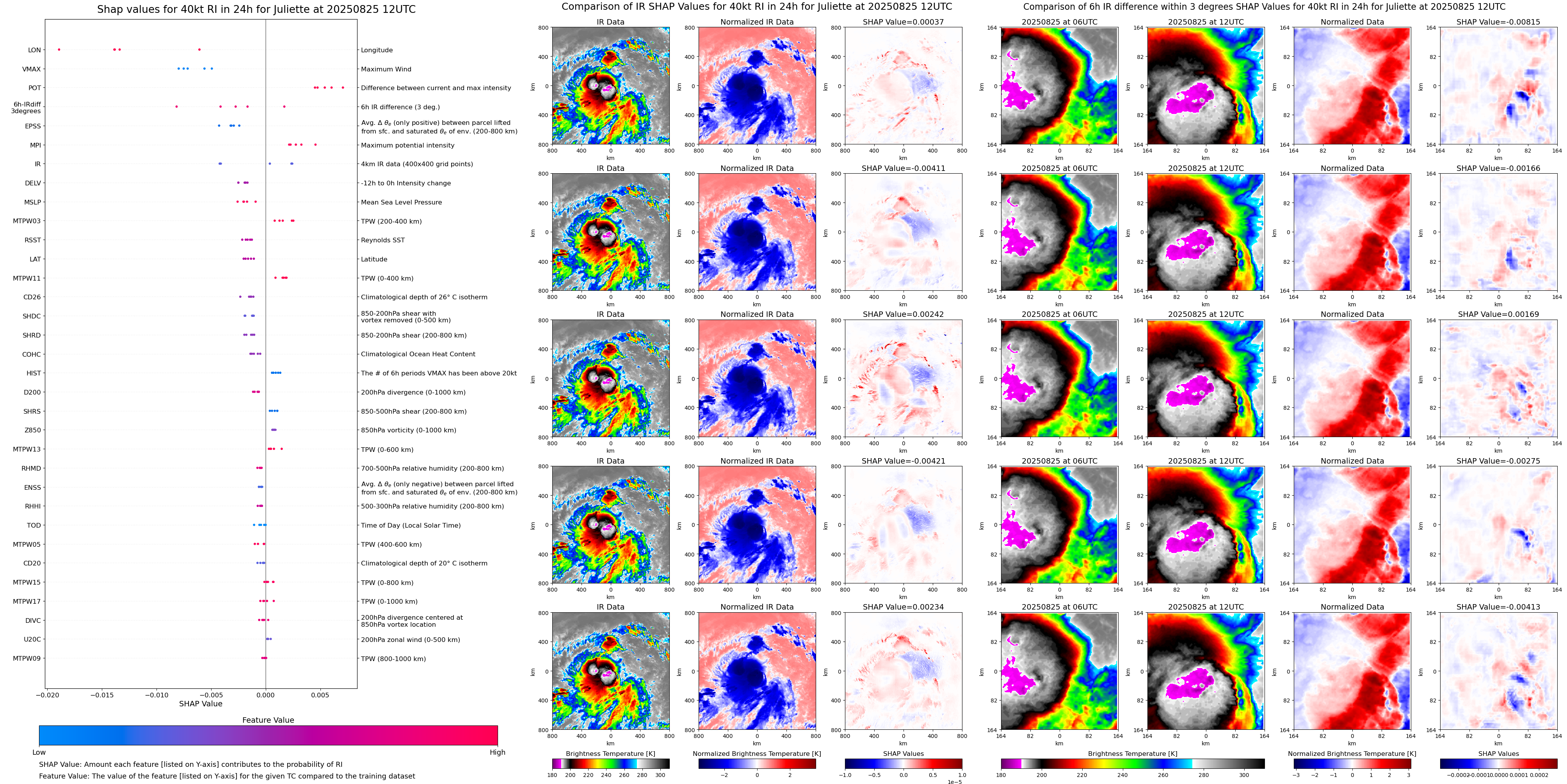 | Juliette at 08/25/25 12 UTC. Intensity = 35 kts, MPI = 159 kts |