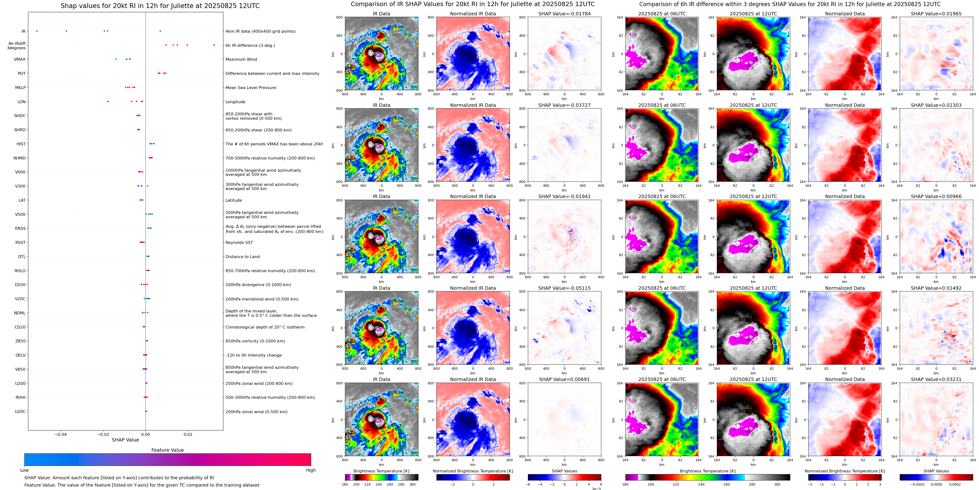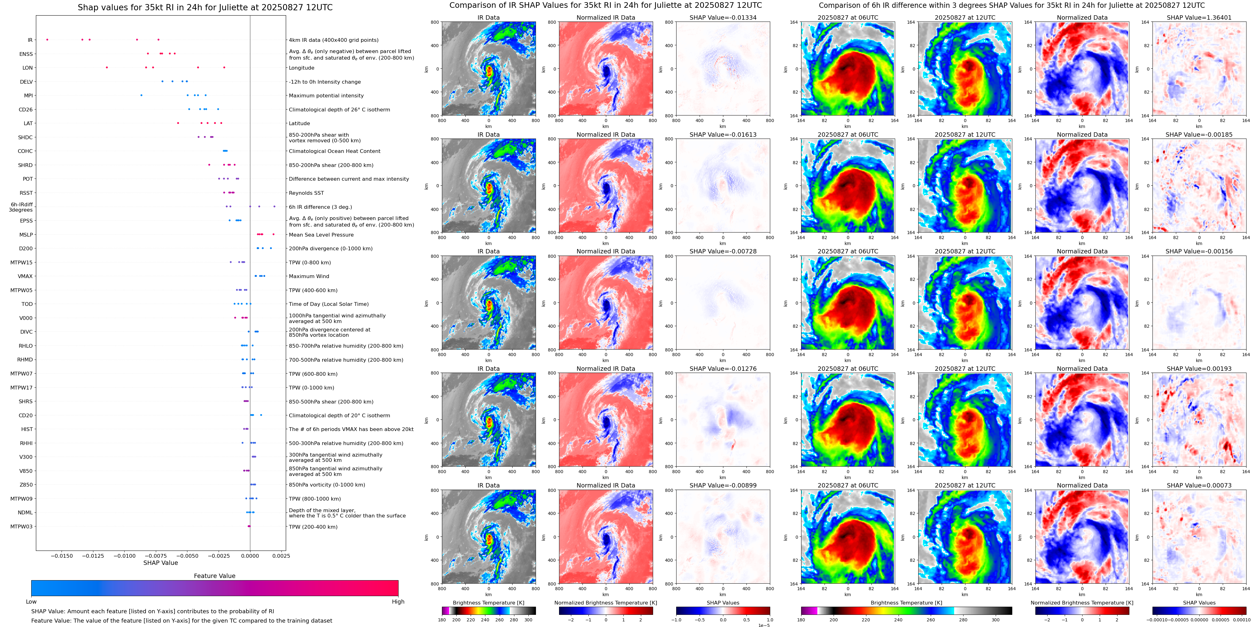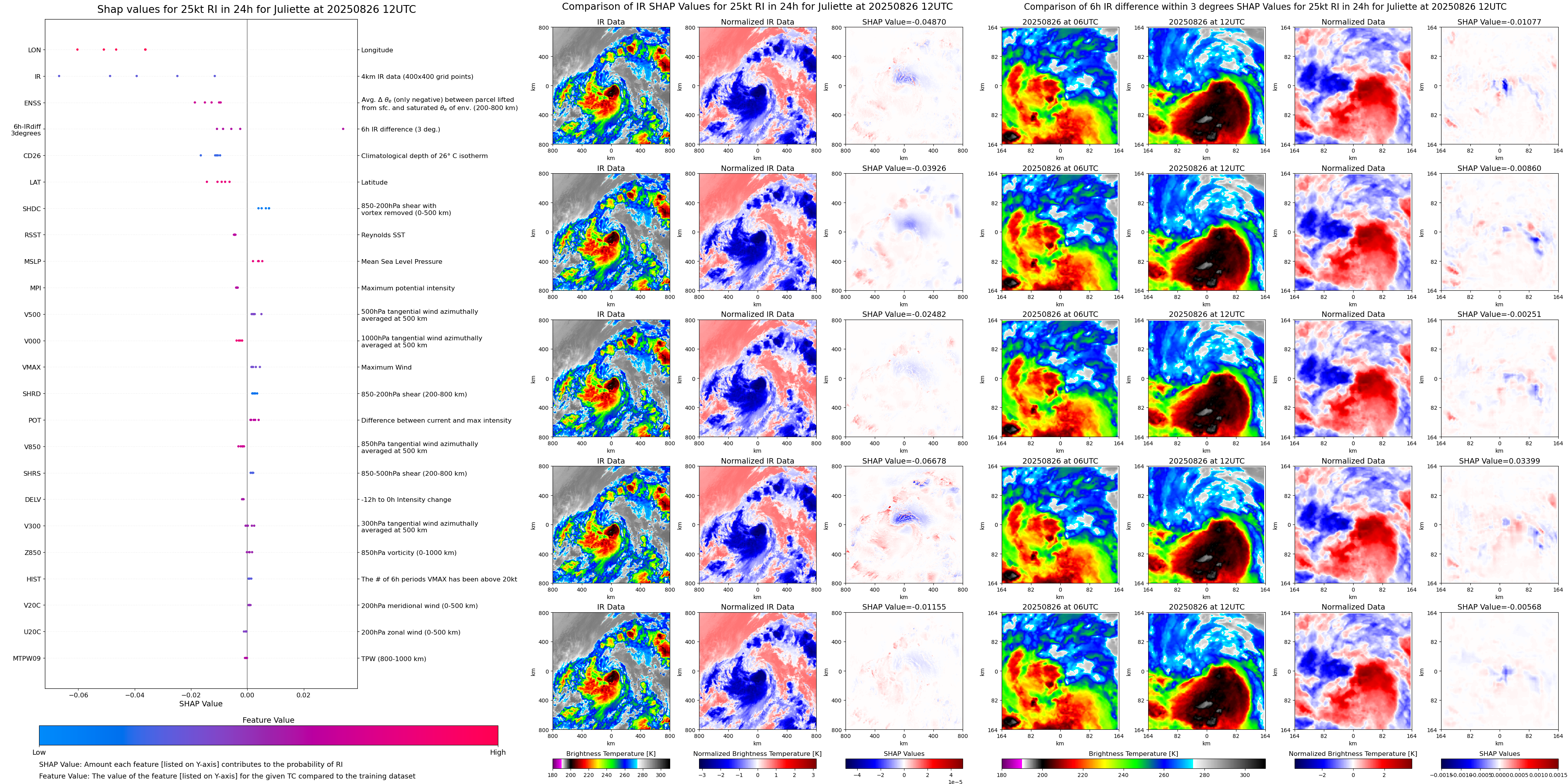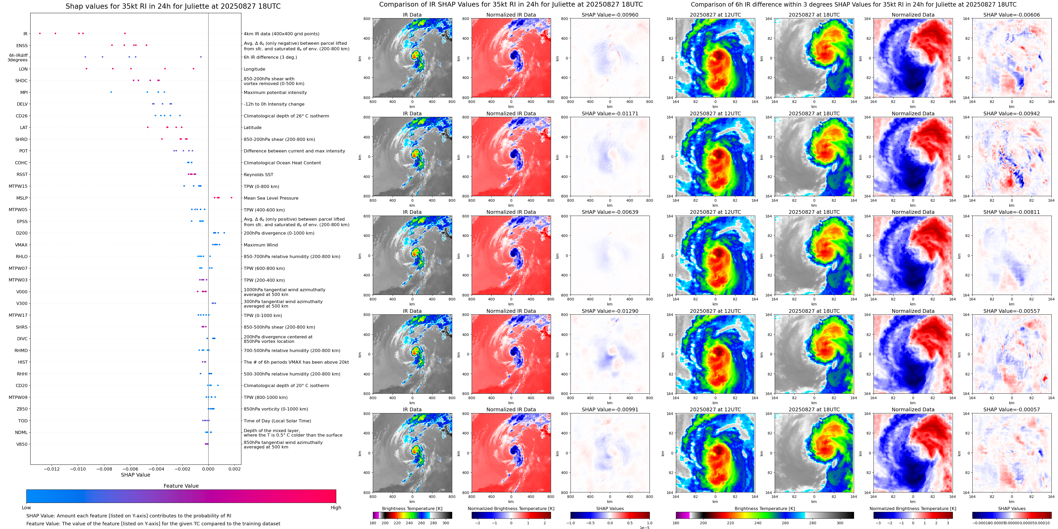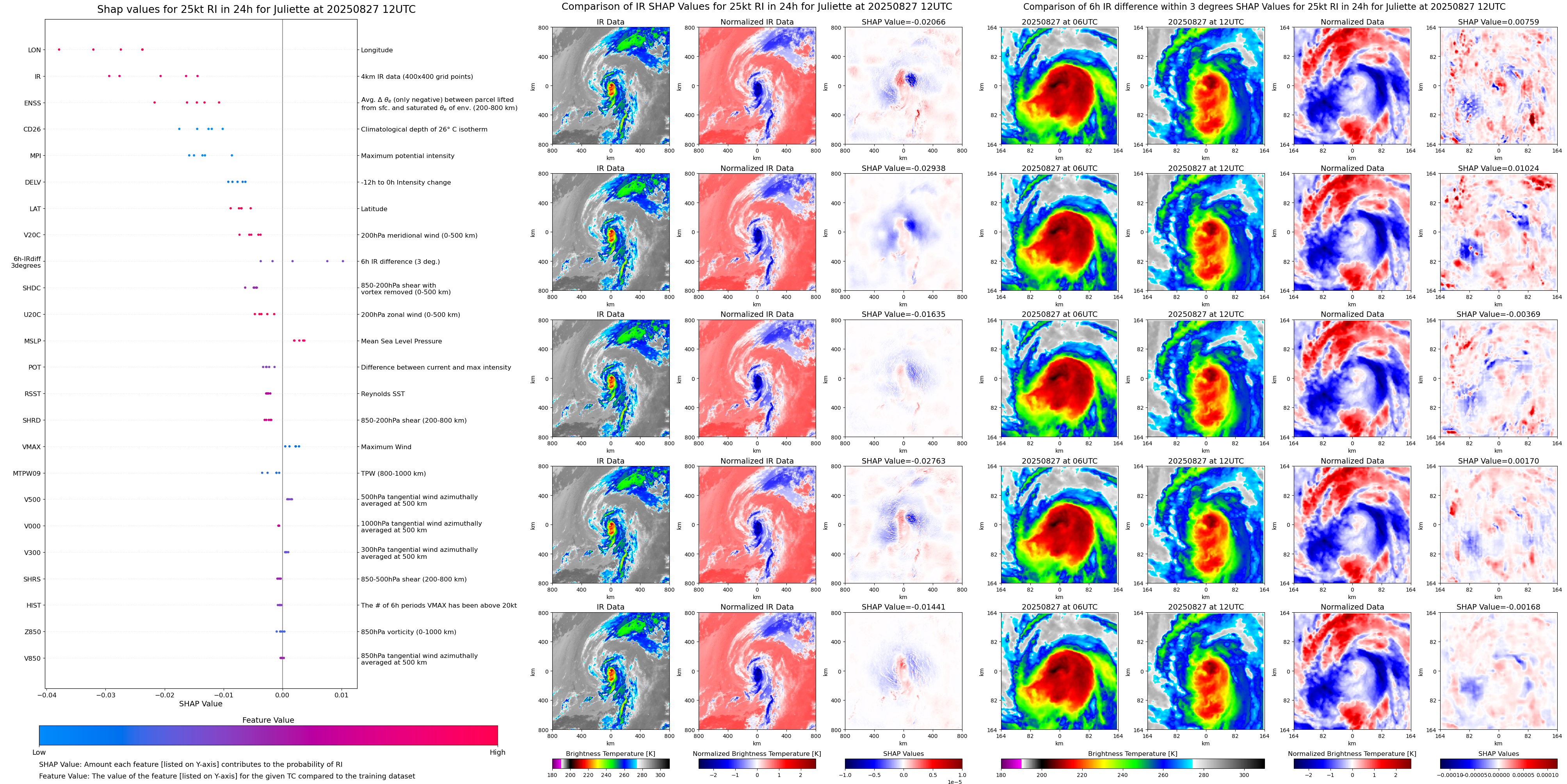 | Juliette at 08/25/25 12 UTC. Intensity = 35 kts, MPI = 159 kts |