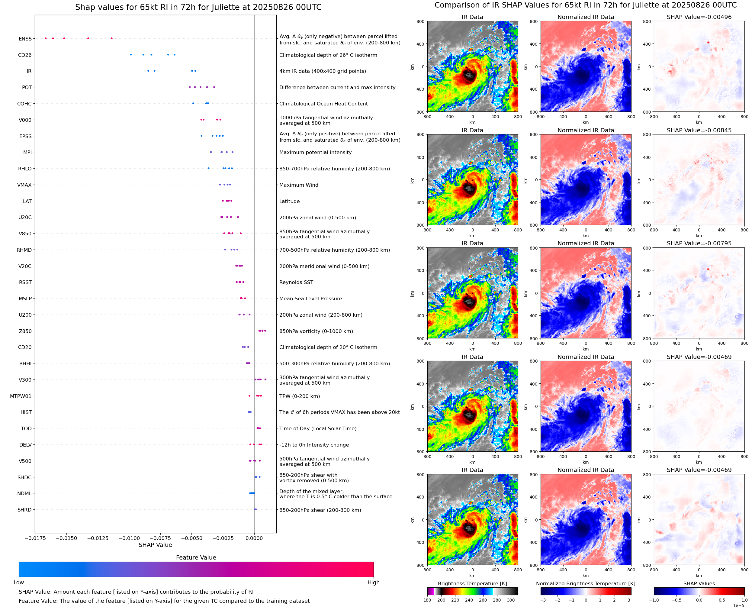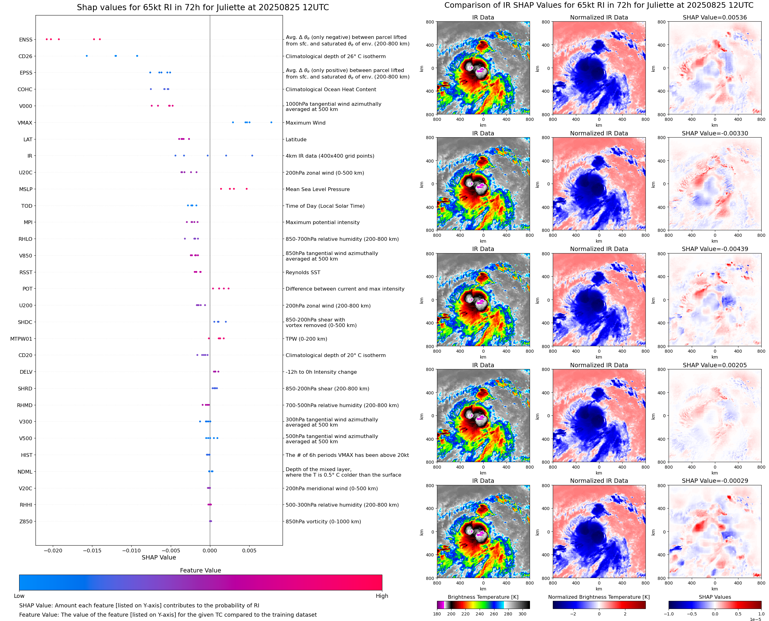 | Juliette at 08/26/25 12 UTC. Intensity = 60 kts, MPI = 94 kts |