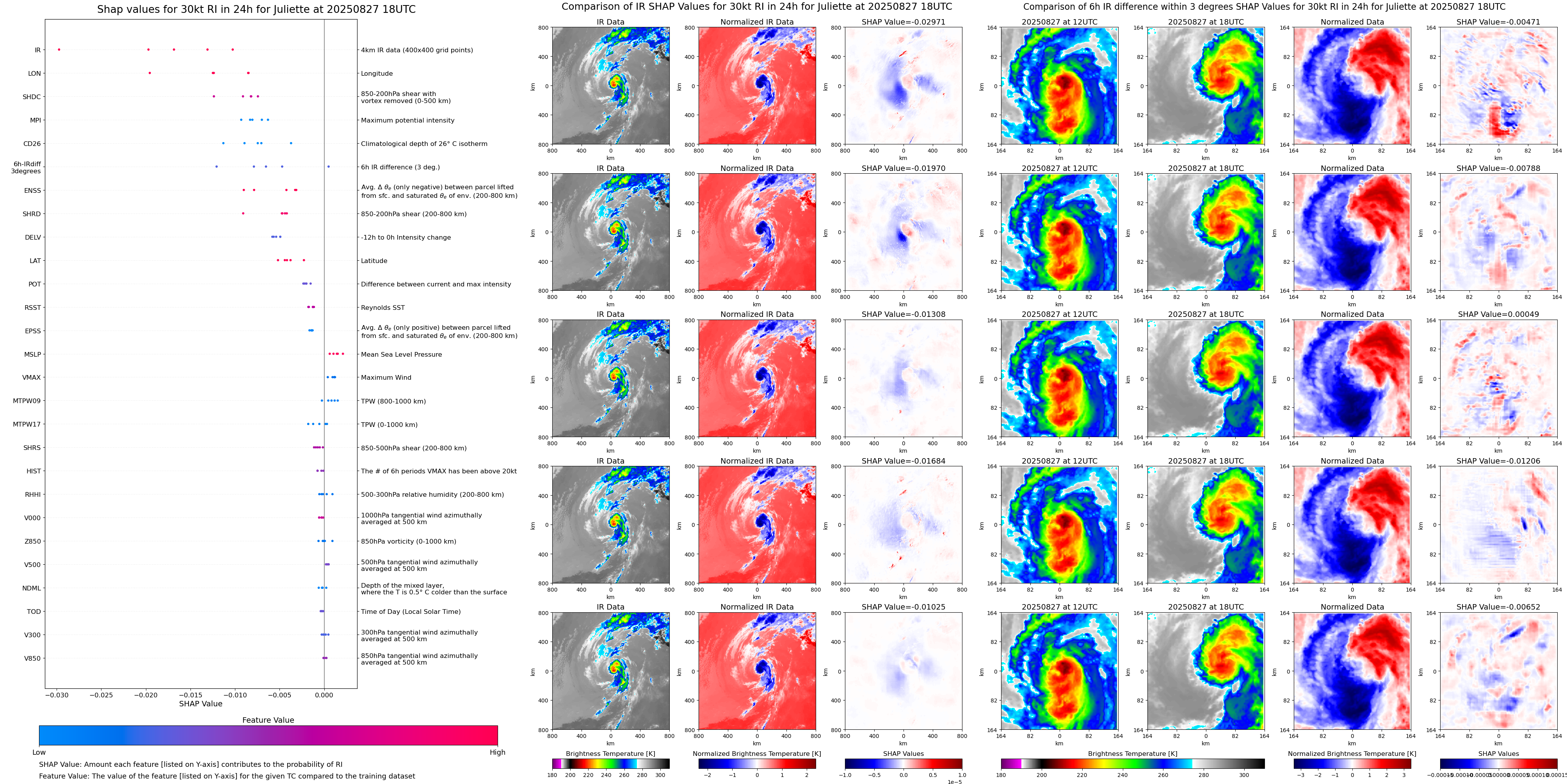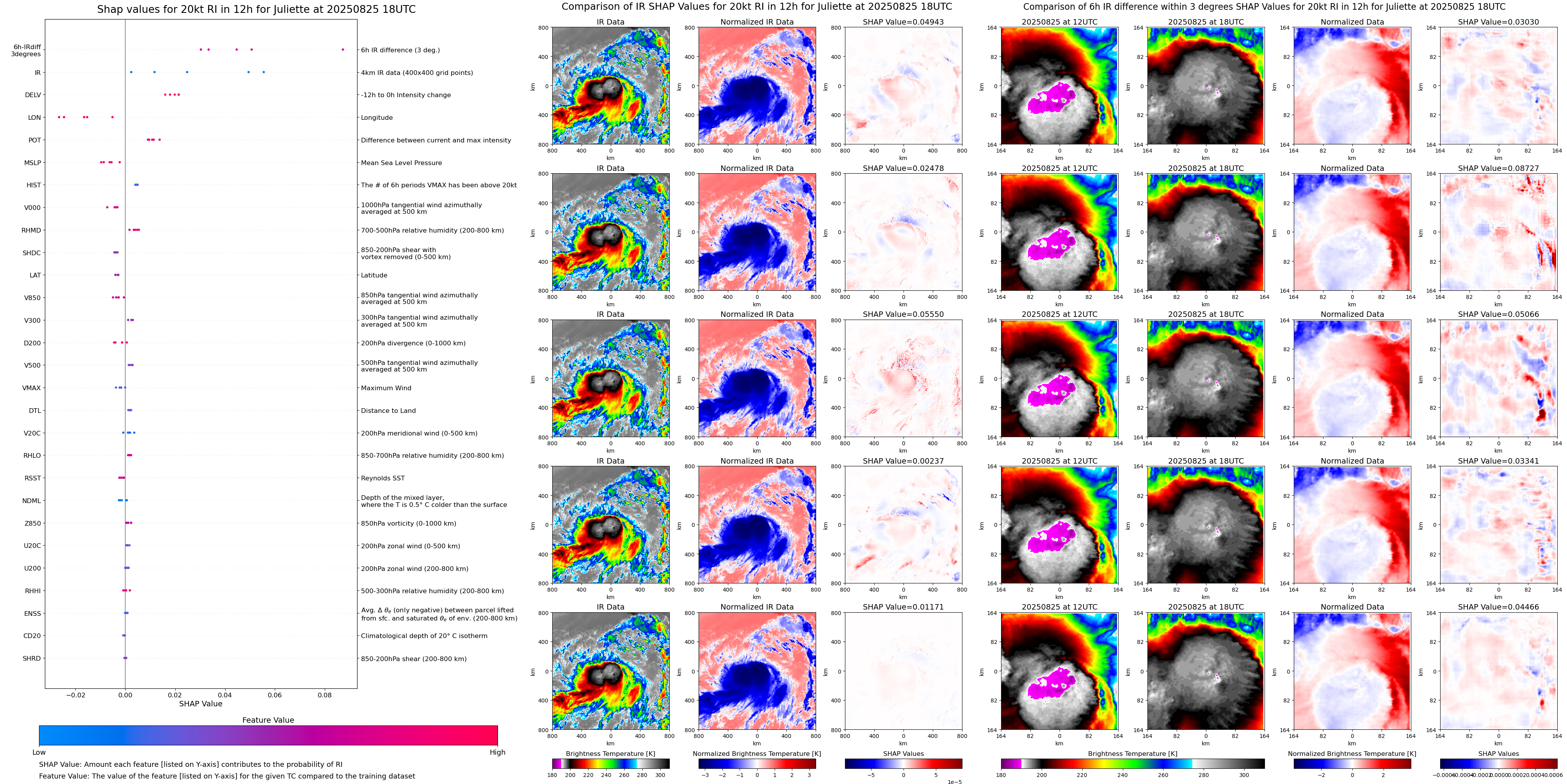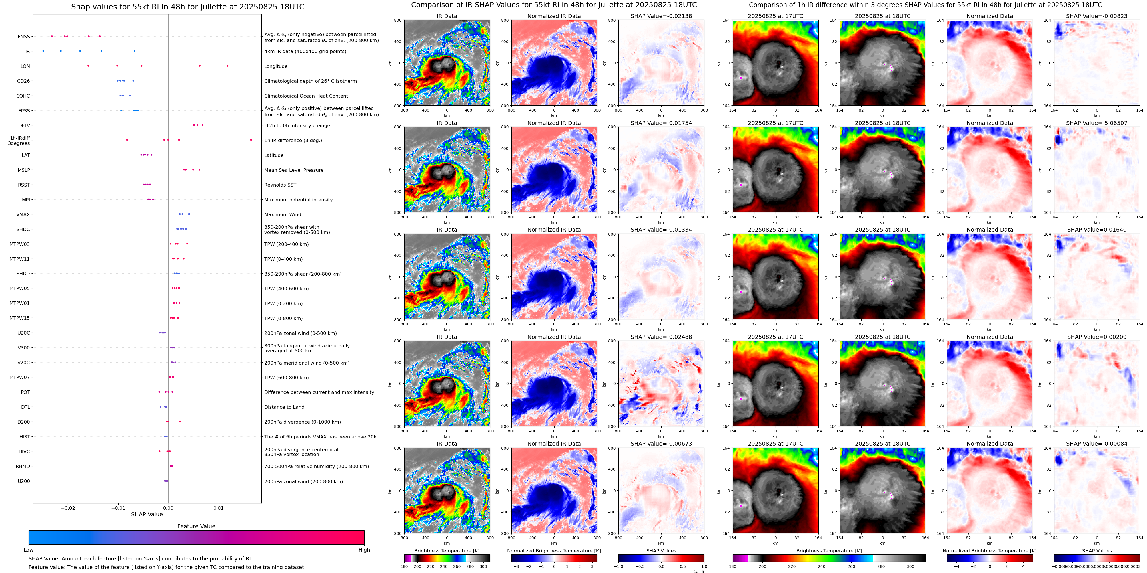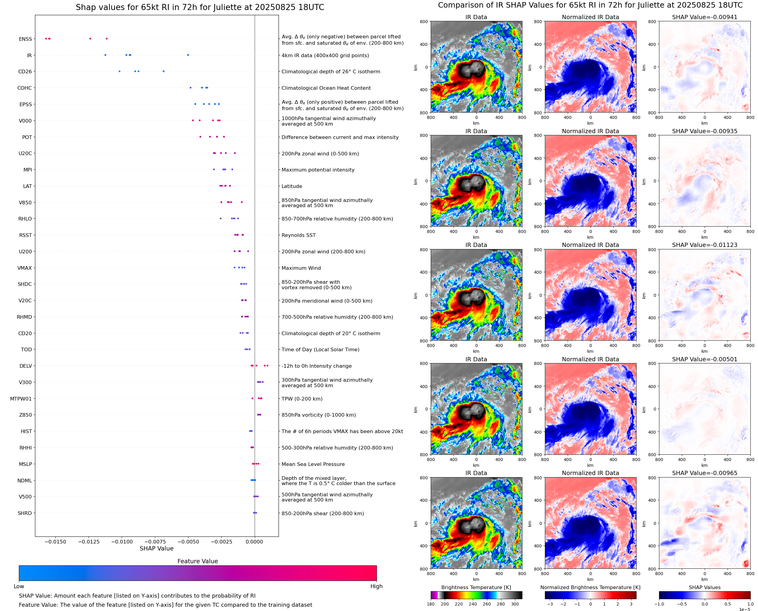 | Juliette at 08/25/25 18 UTC. Intensity = 50 kts, MPI = 154 kts |