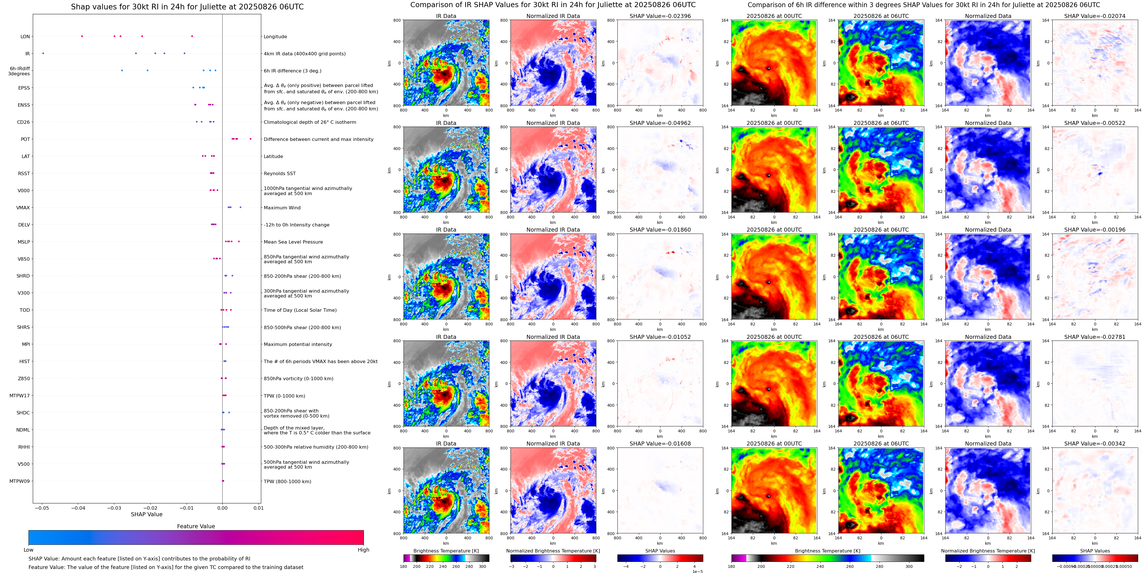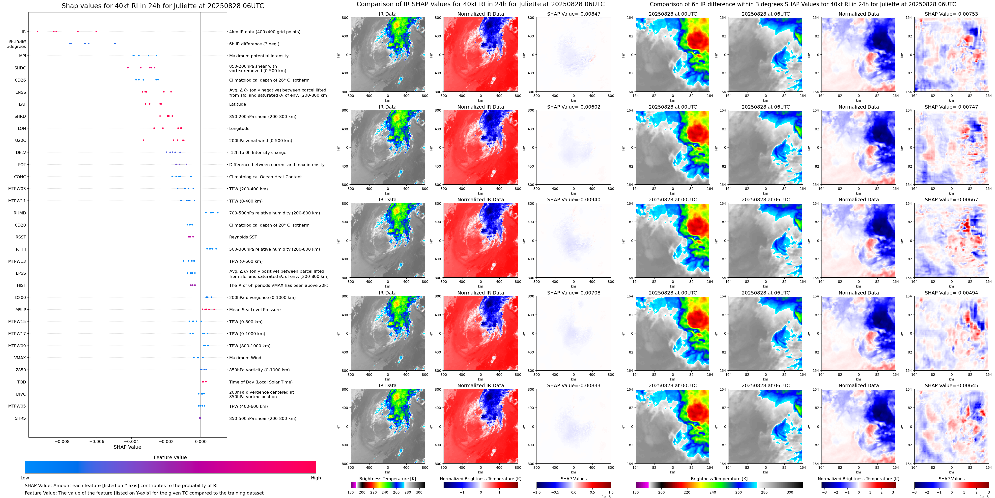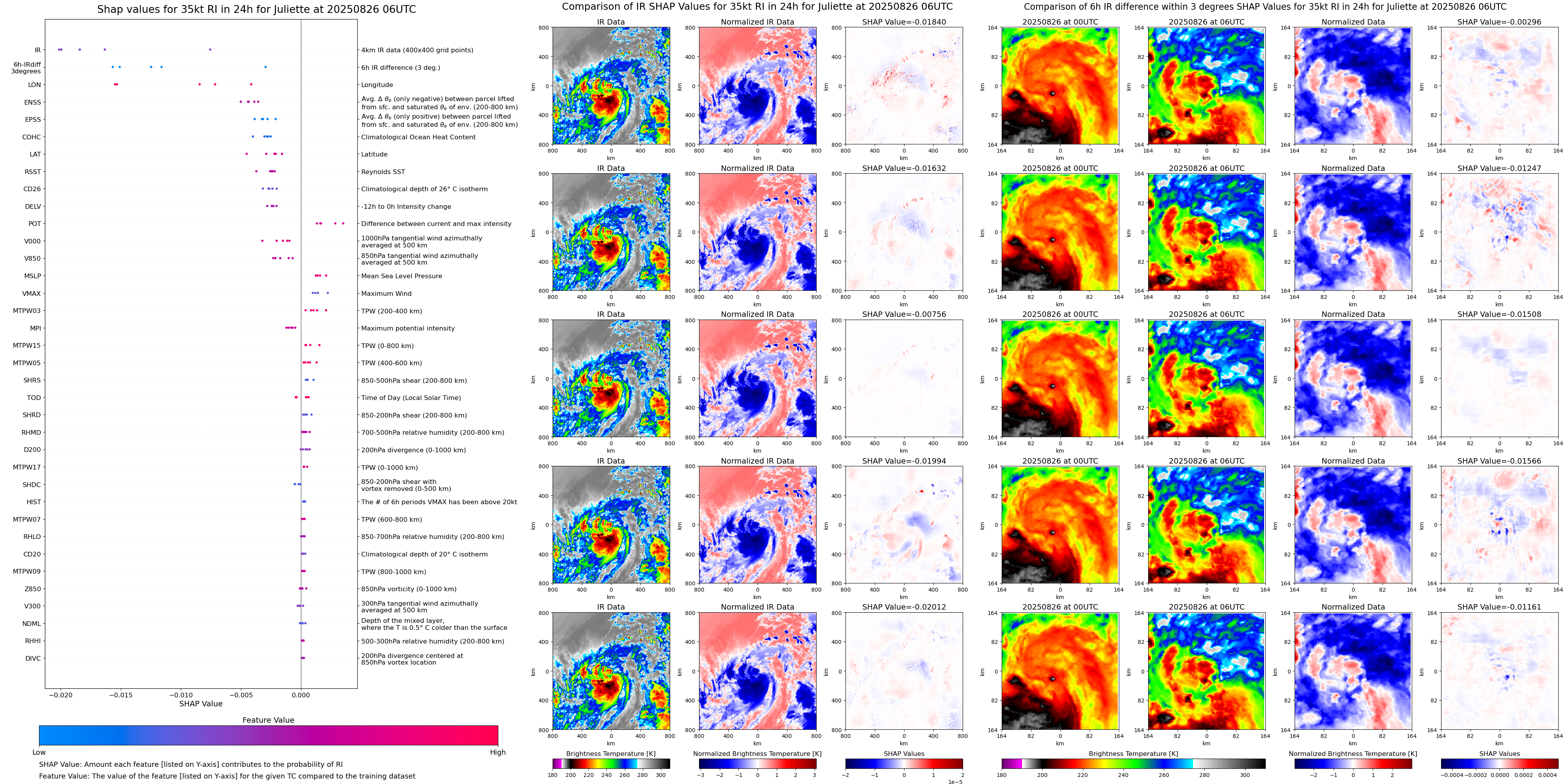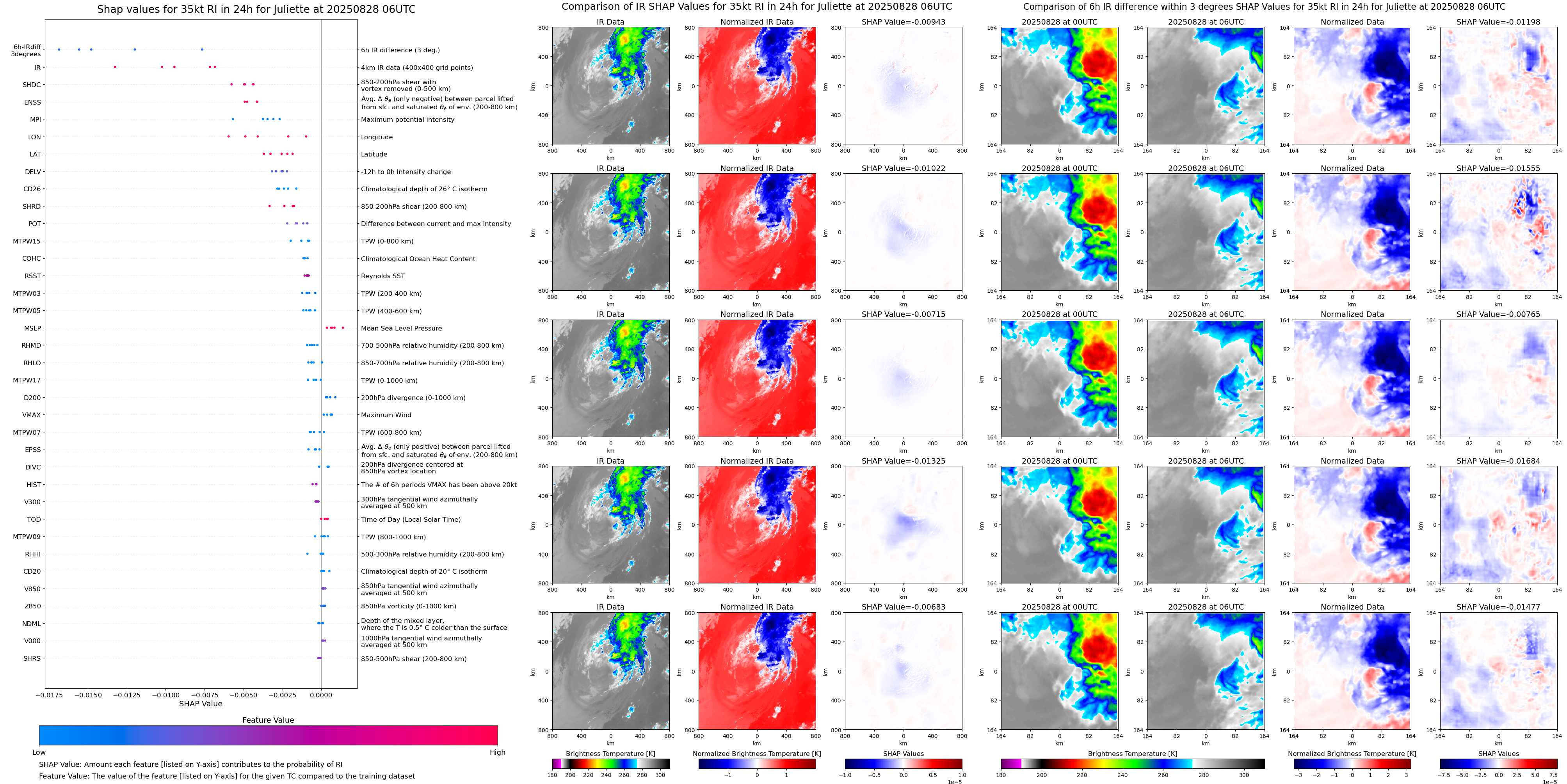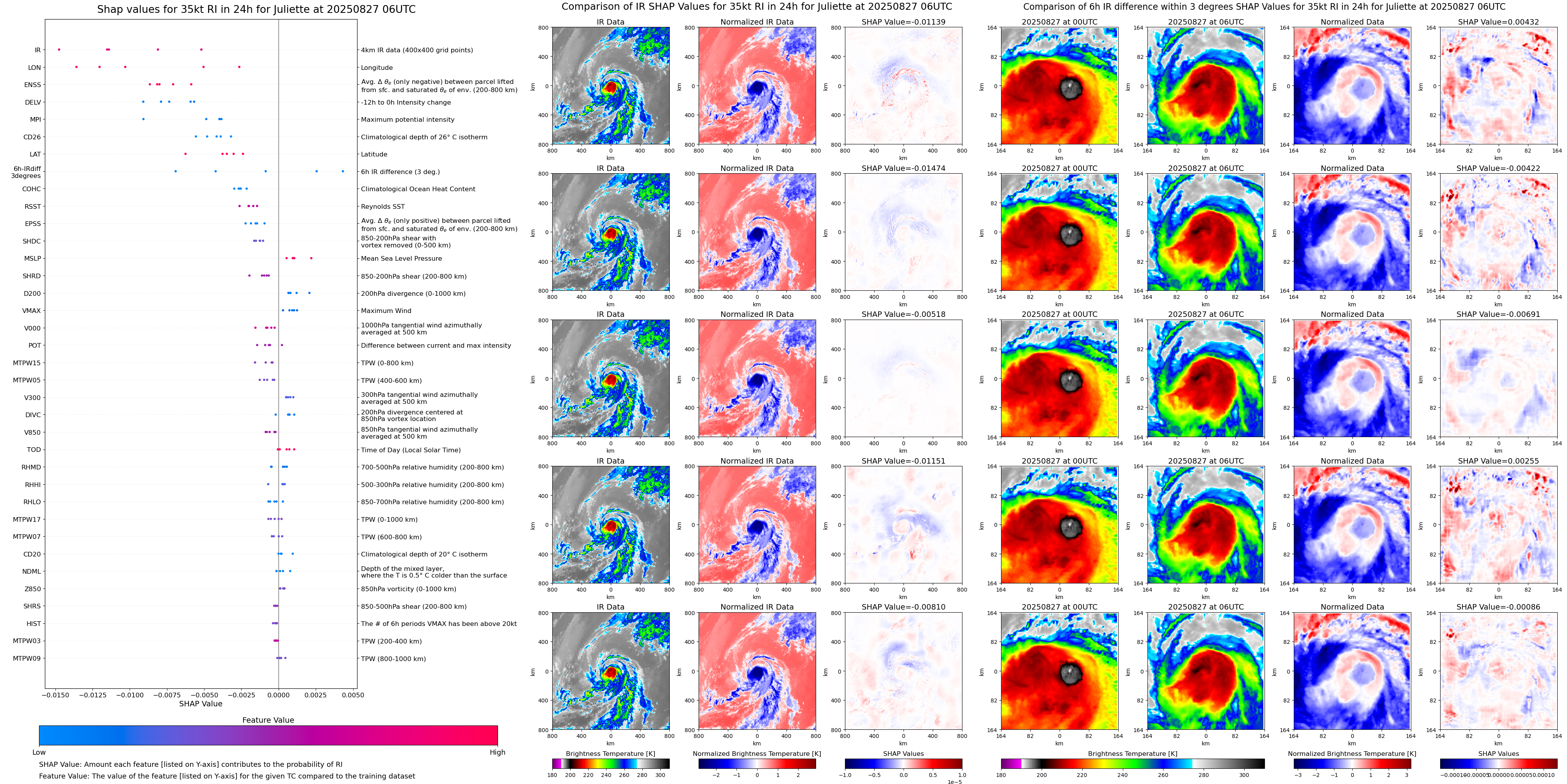 | Juliette at 08/25/25 06 UTC. Intensity = 35 kts, MPI = 162 kts |