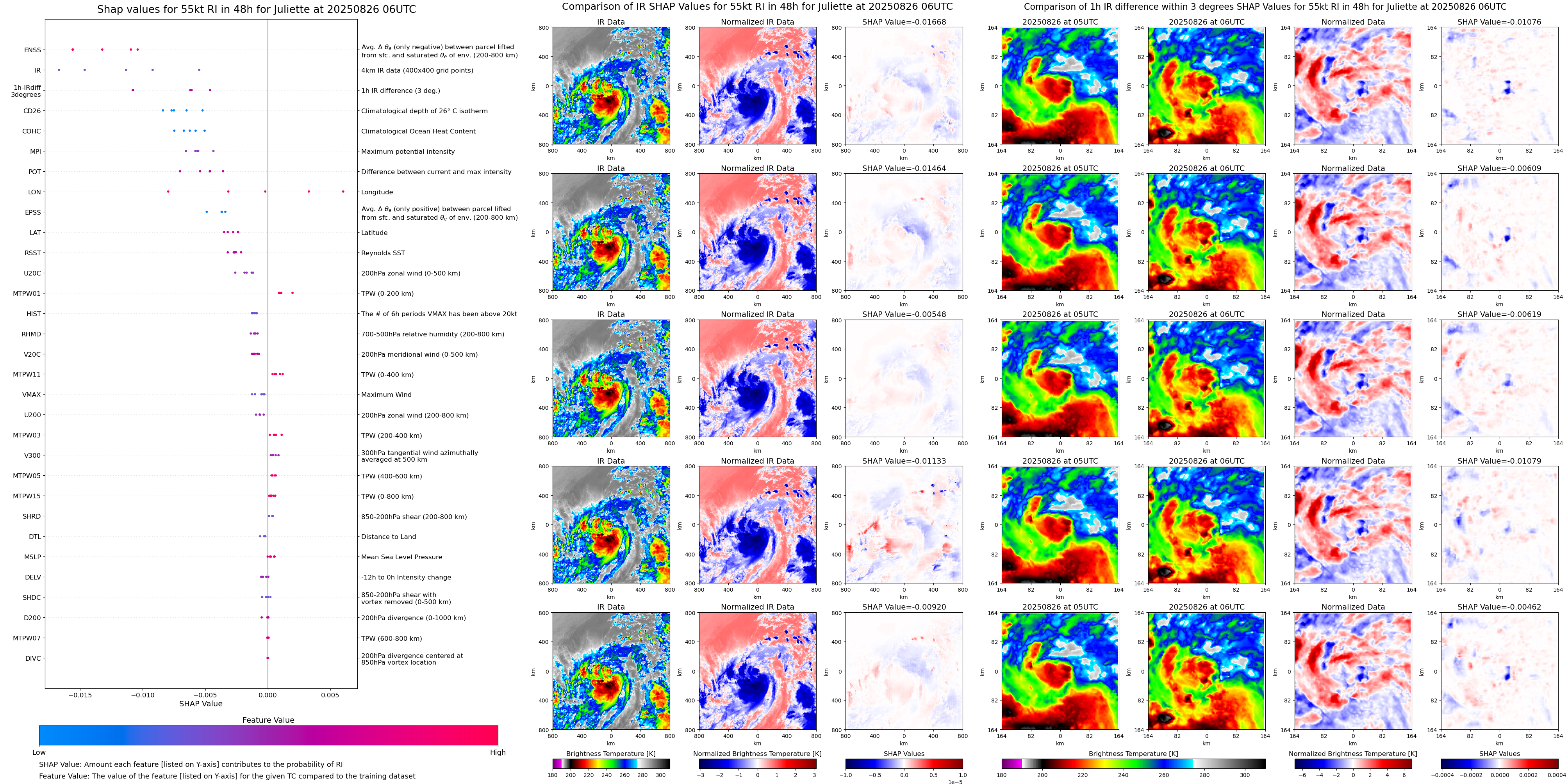 | Juliette at 08/26/25 06 UTC. Intensity = 55 kts, MPI = 98 kts |