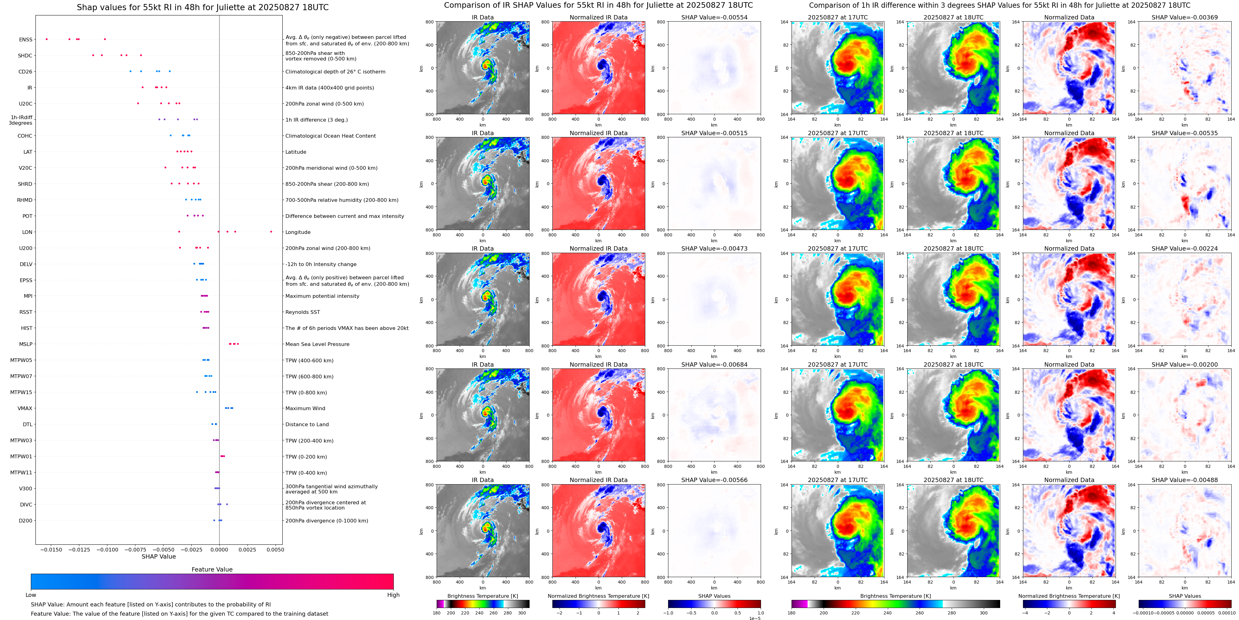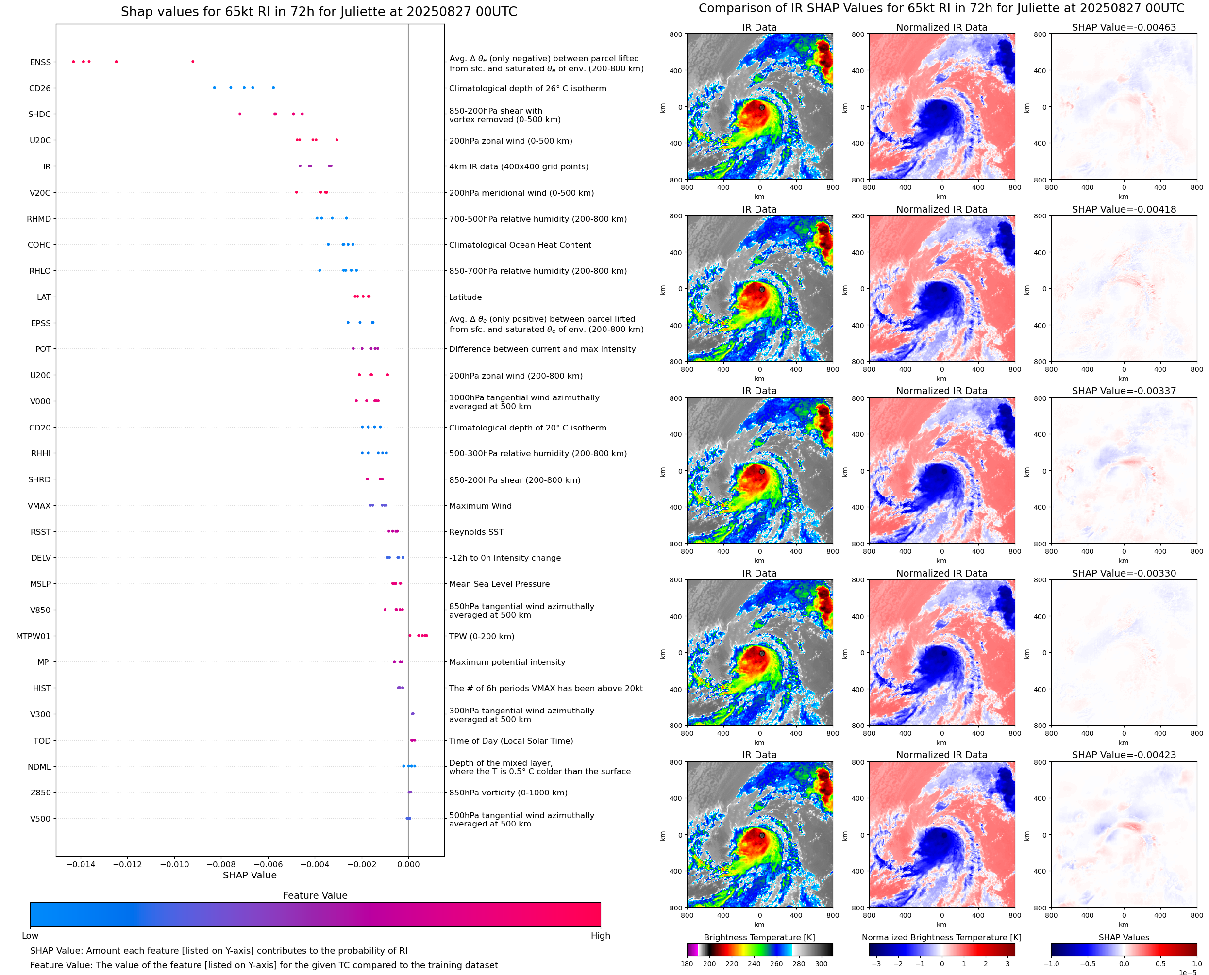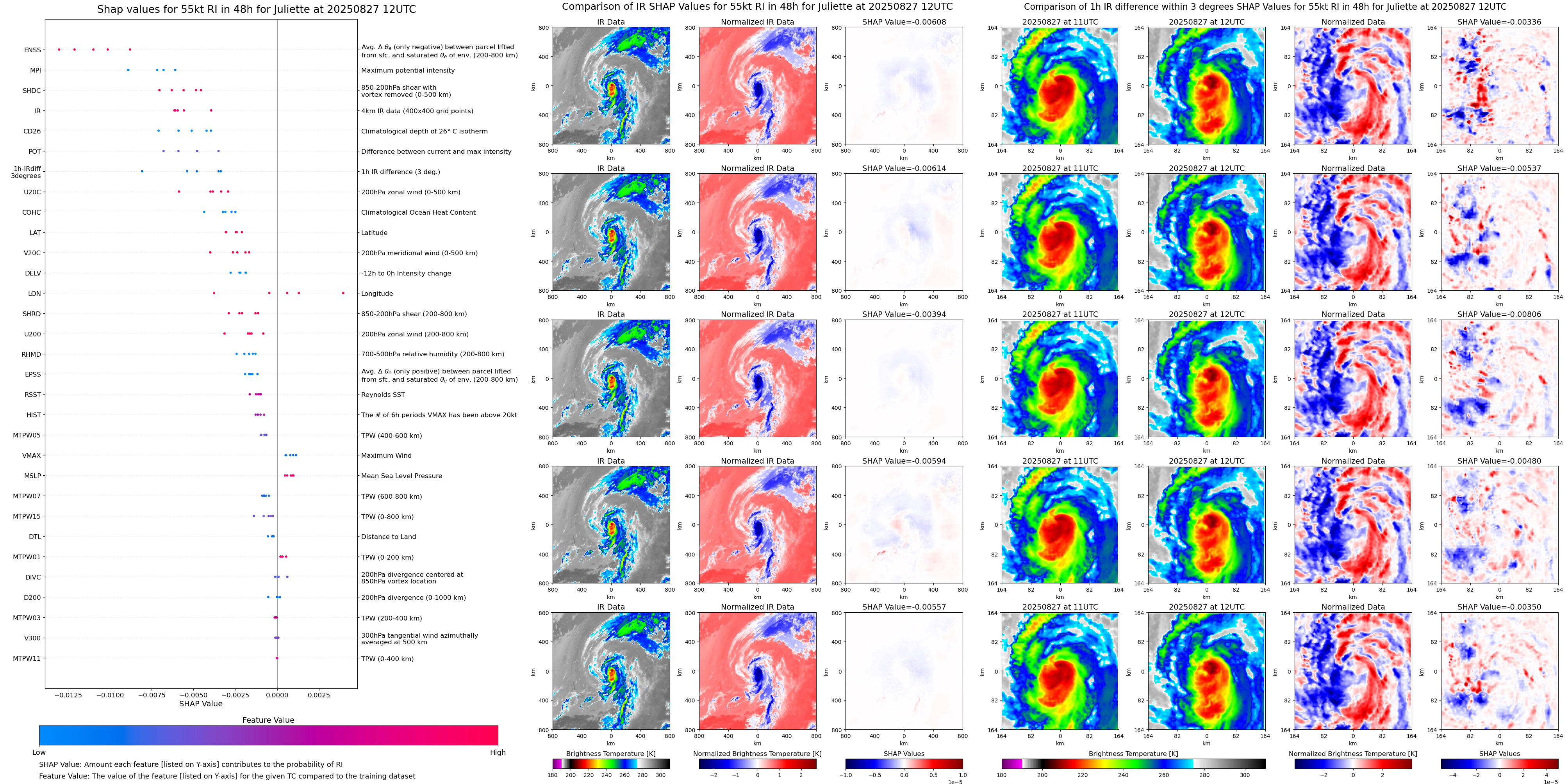 | Juliette at 08/27/25 00 UTC. Intensity = 55 kts, MPI = 76 kts |