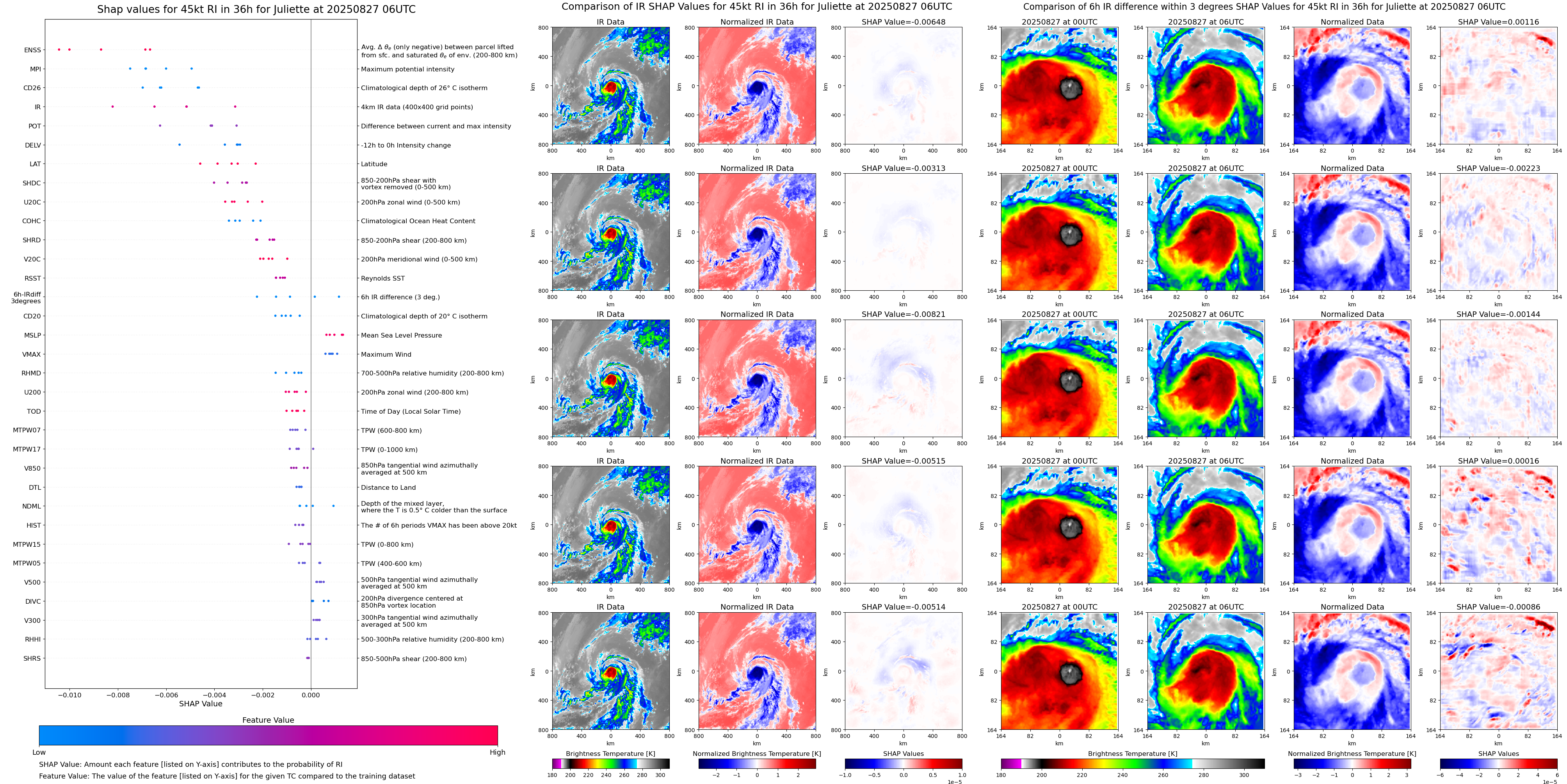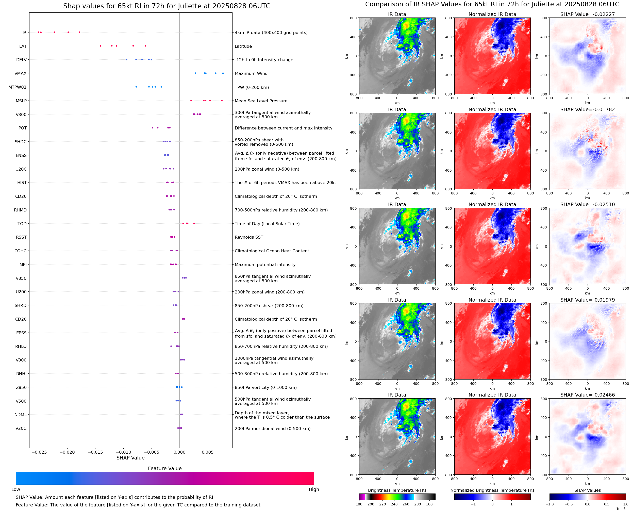 | Juliette at 08/27/25 06 UTC. Intensity = 45 kts, MPI = 23 kts |