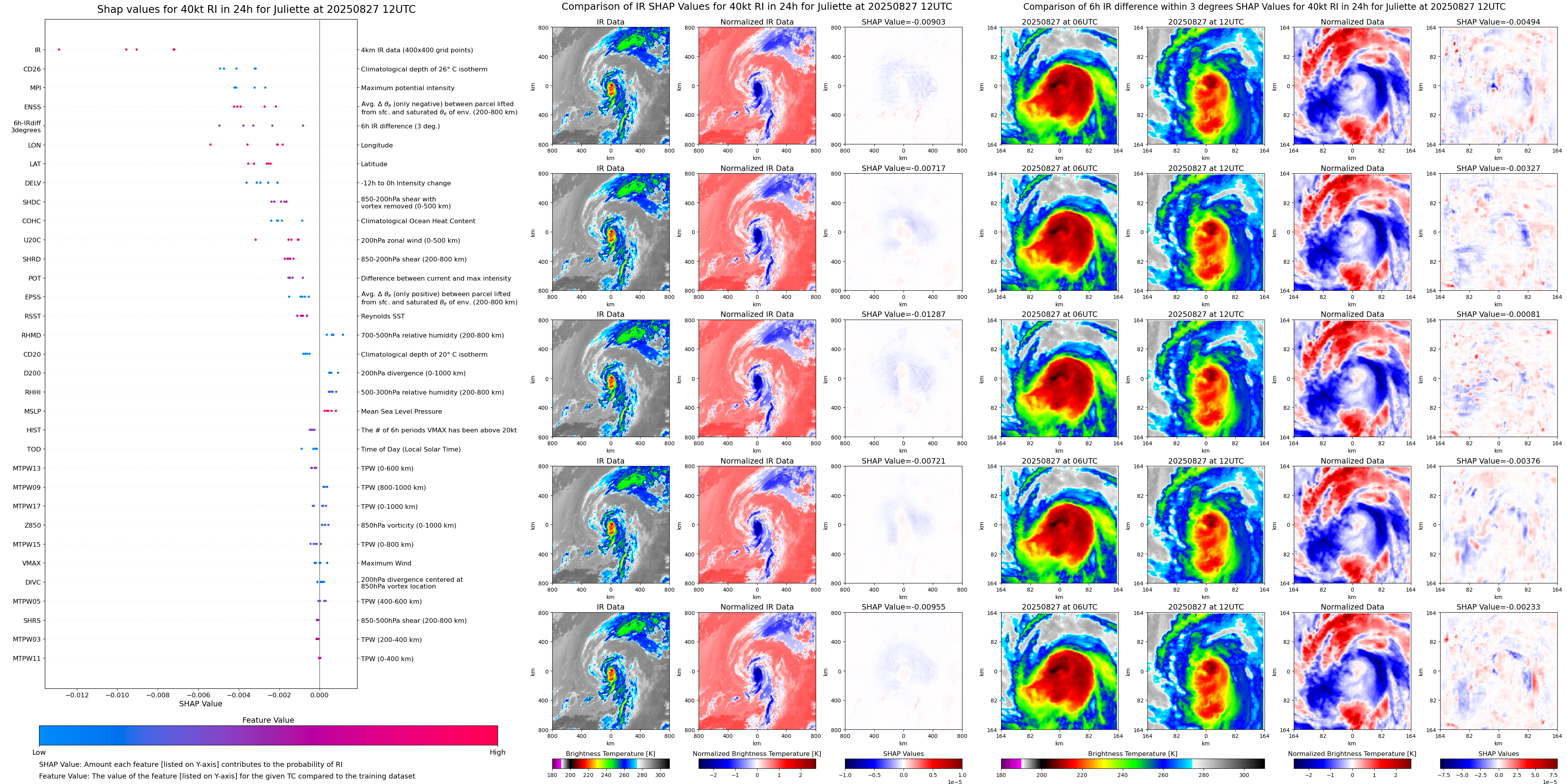 | Juliette at 08/27/25 12 UTC. Intensity = 45 kts, MPI = 19 kts |