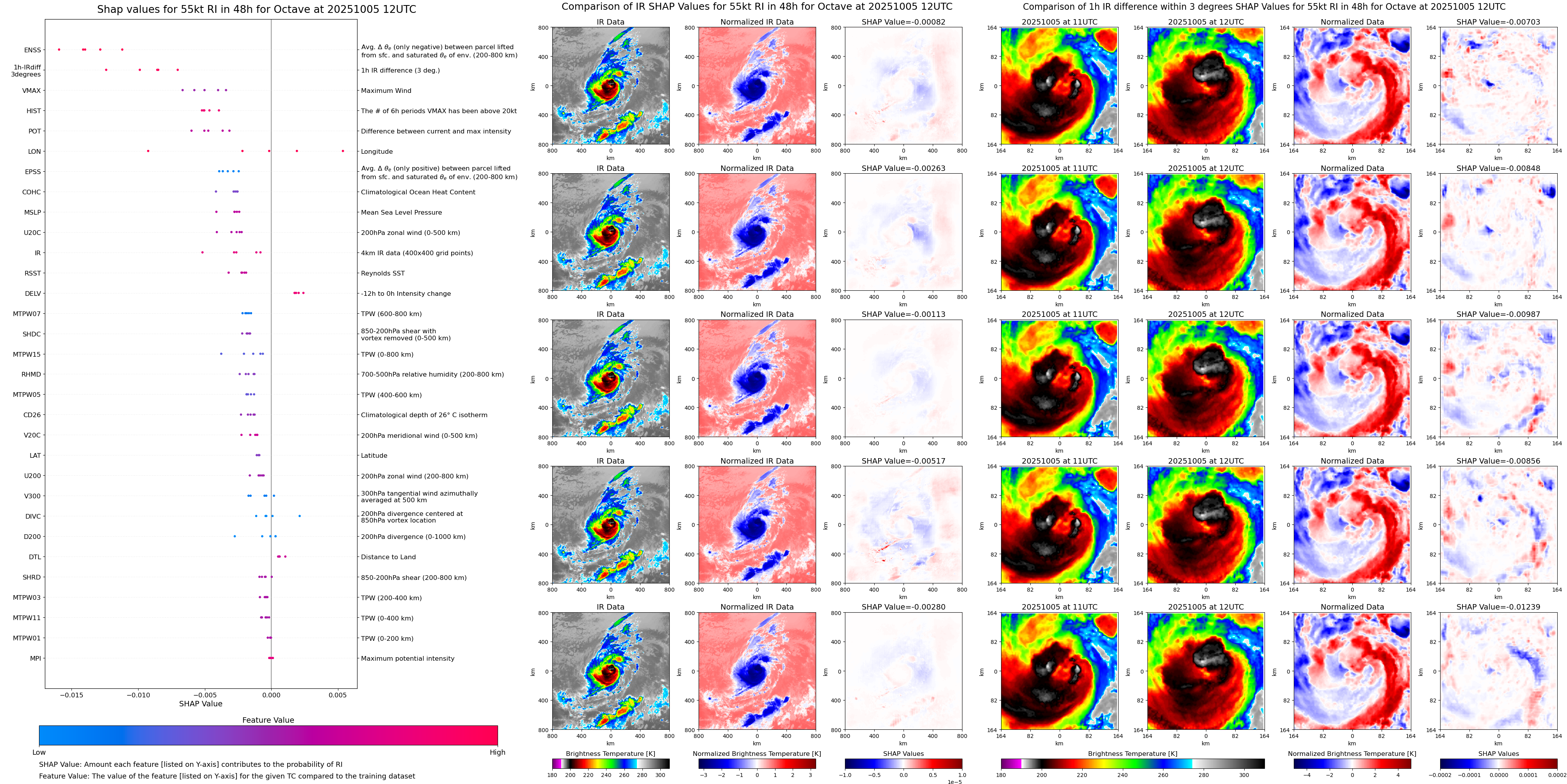 | Octave at 10/01/25 18 UTC. Intensity = 55 kts, MPI = 129 kts |