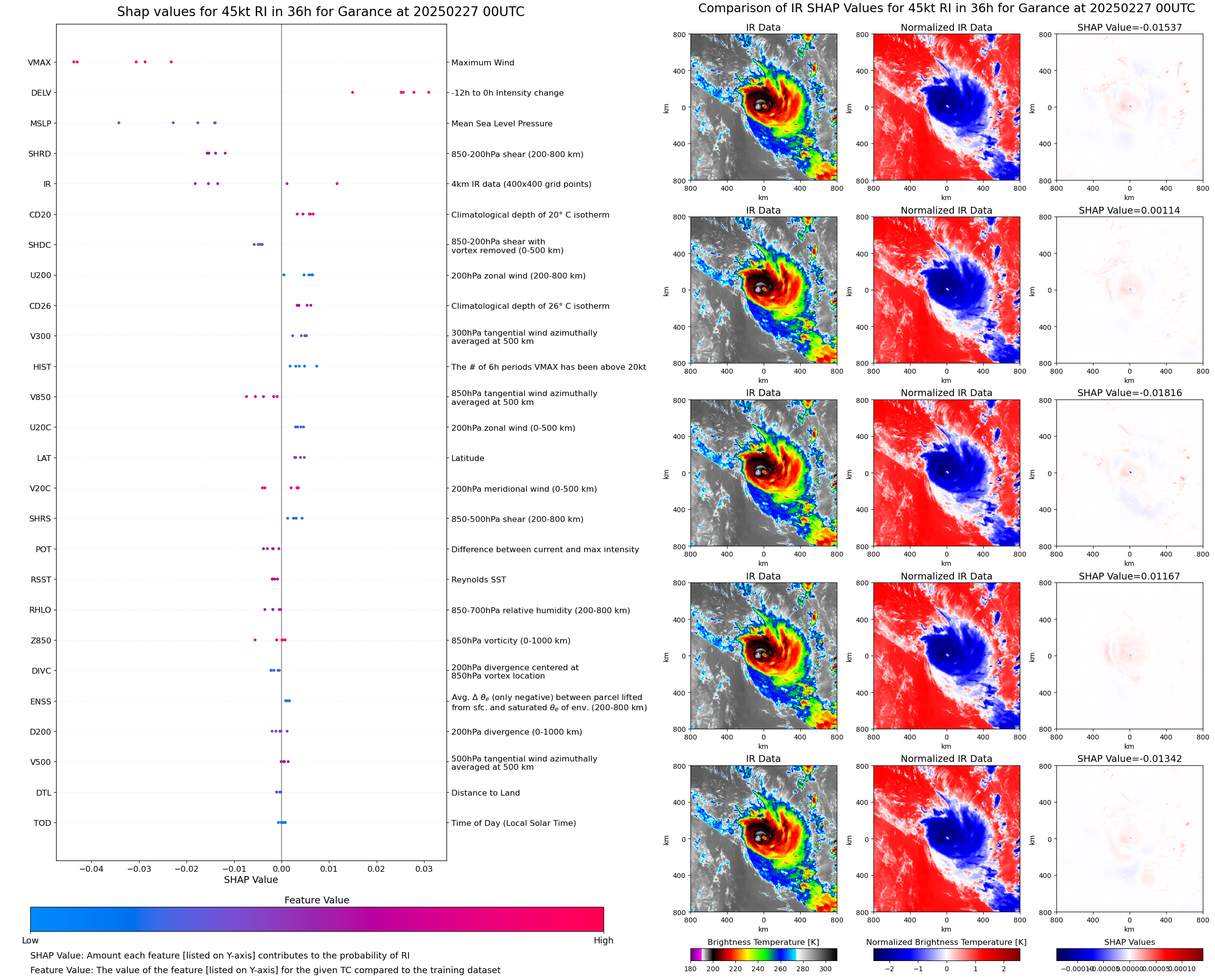| Garance at 02/27/25 18 UTC. Intensity = 105 kts, MPI = 9999 kts |