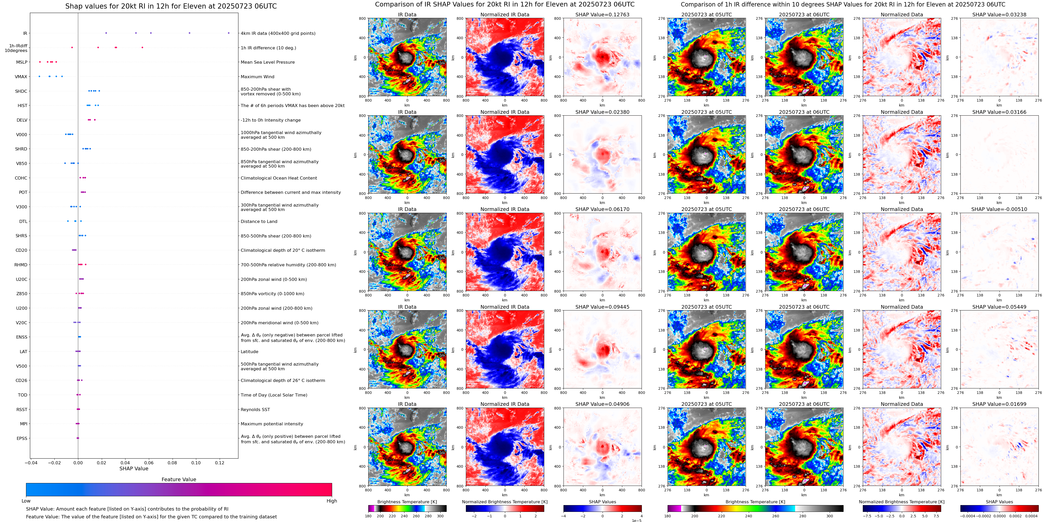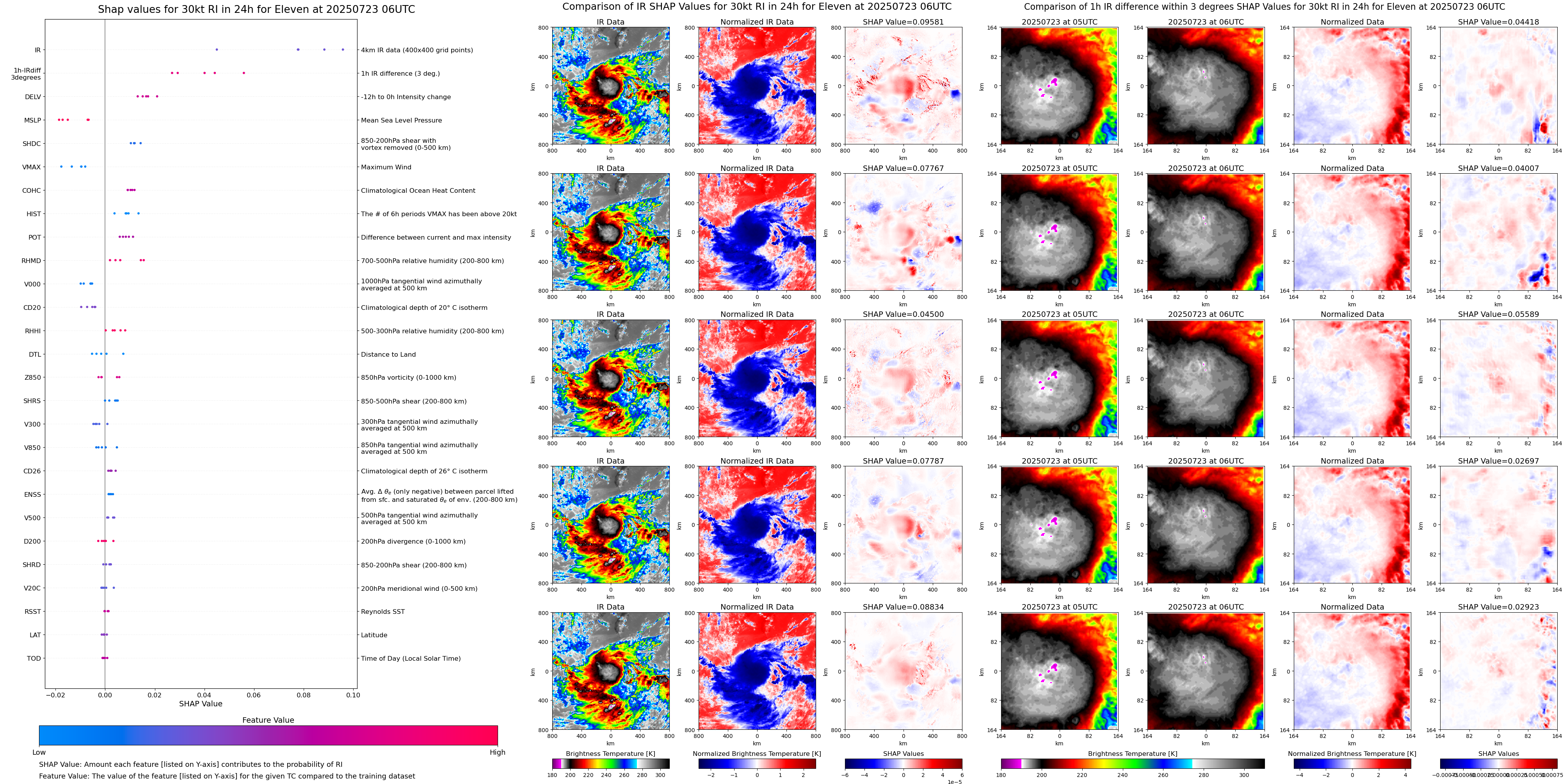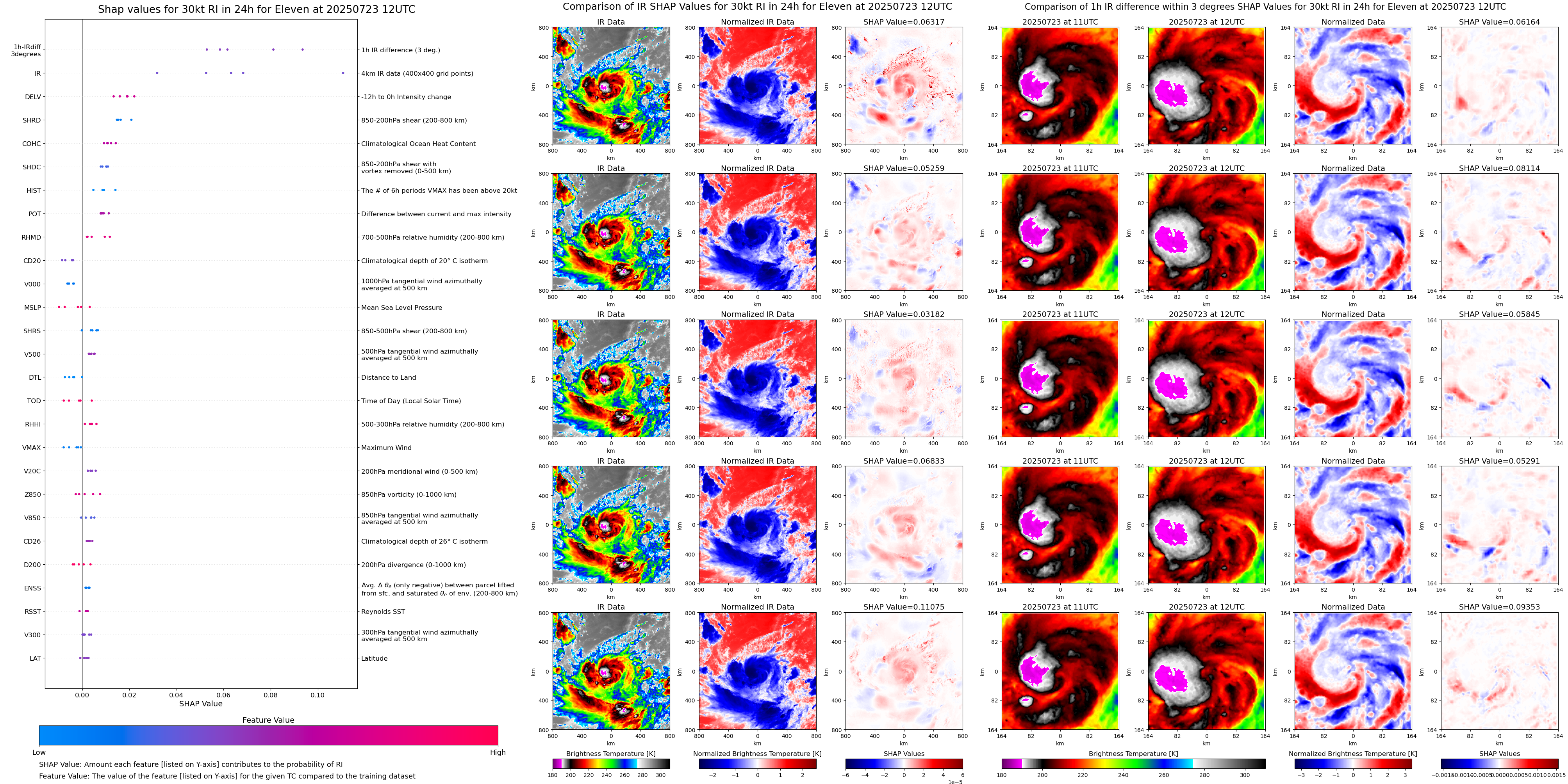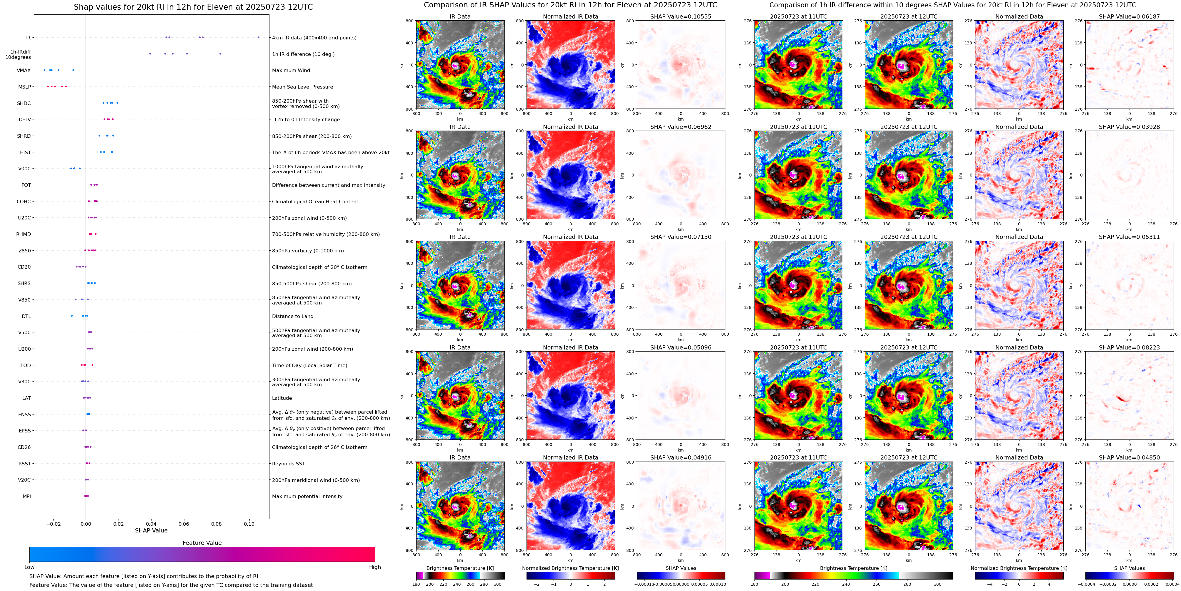 | Eleven at 07/23/25 00 UTC. Intensity = 30 kts, MPI = 9999 kts |