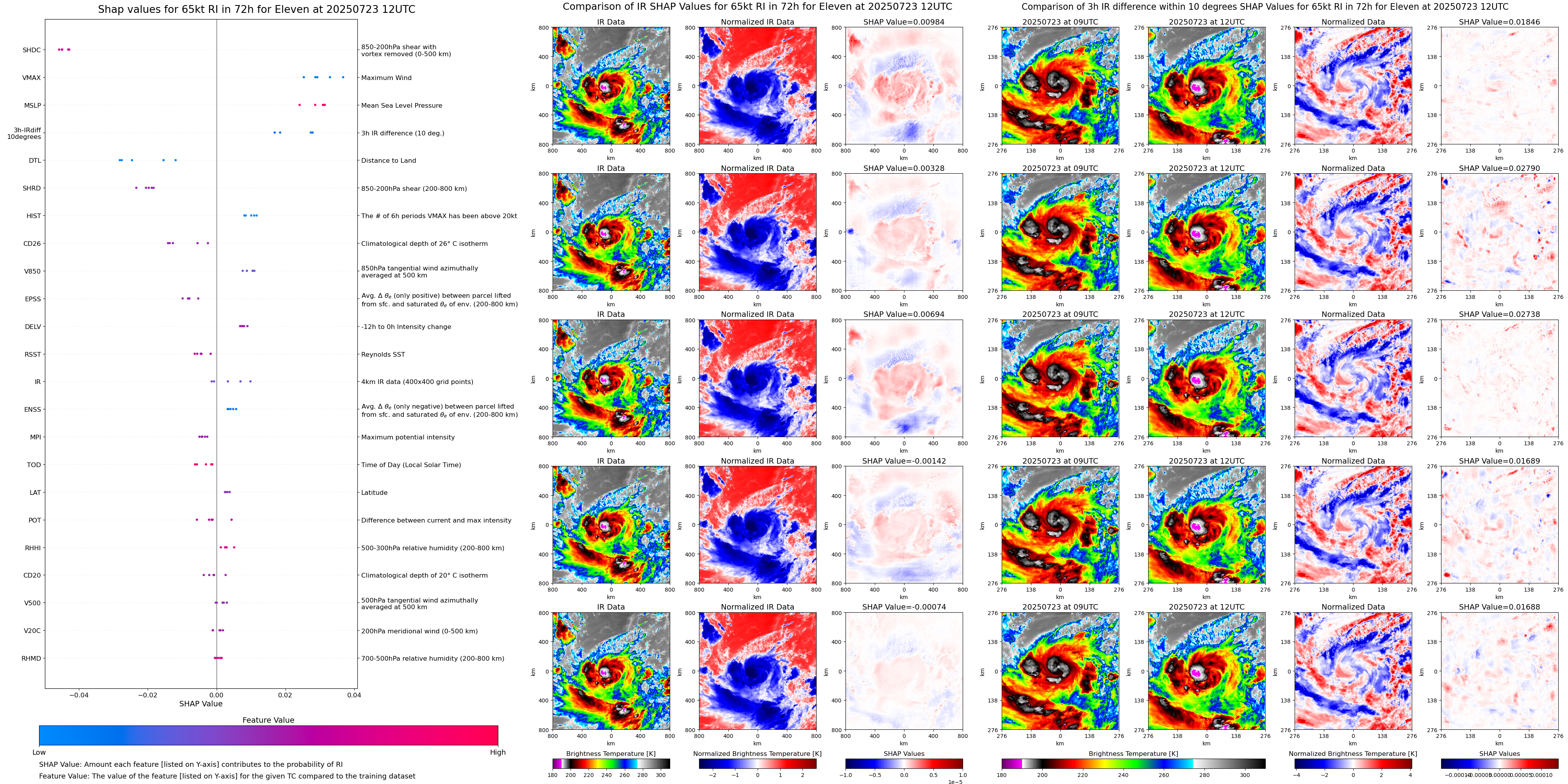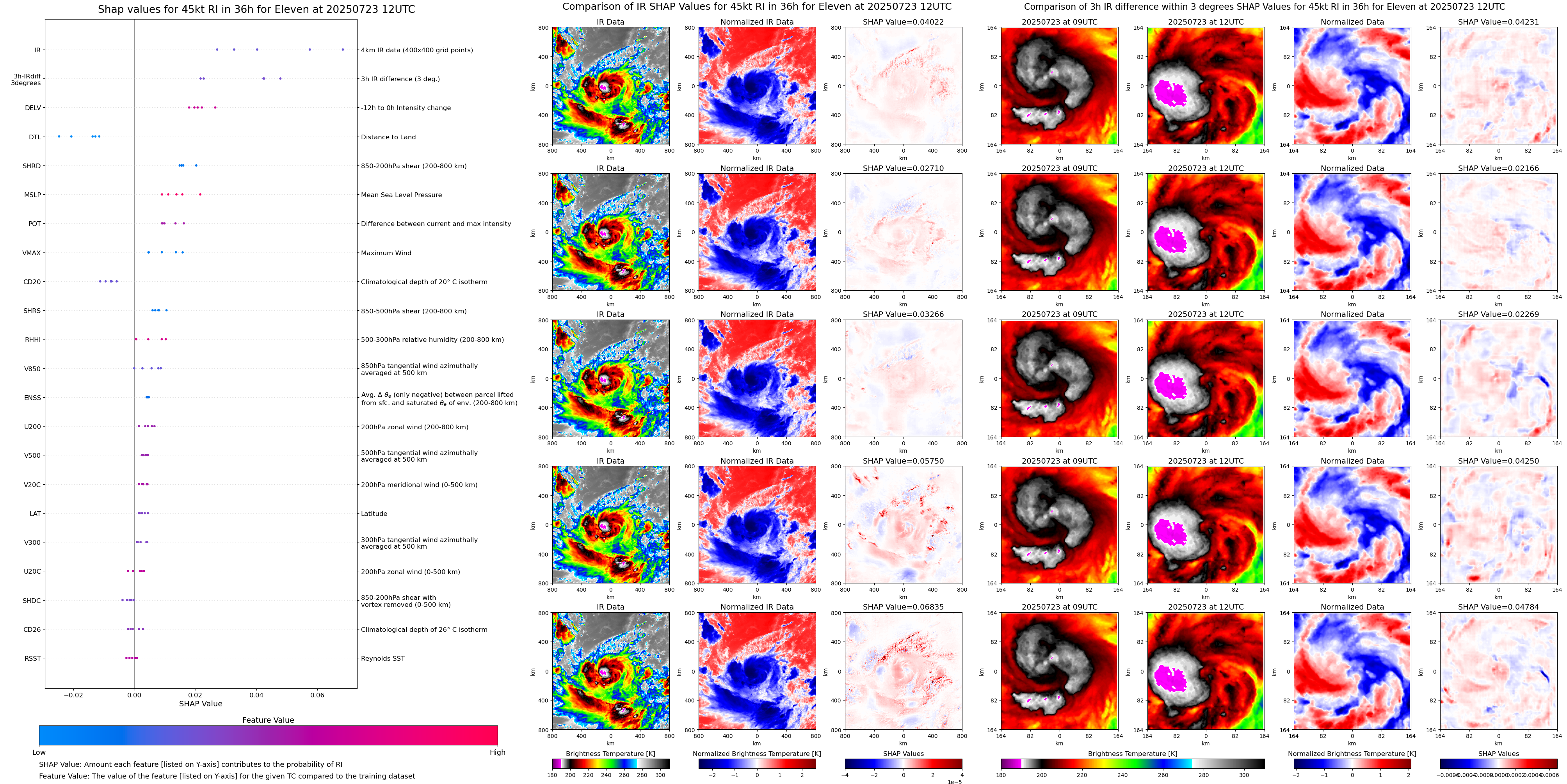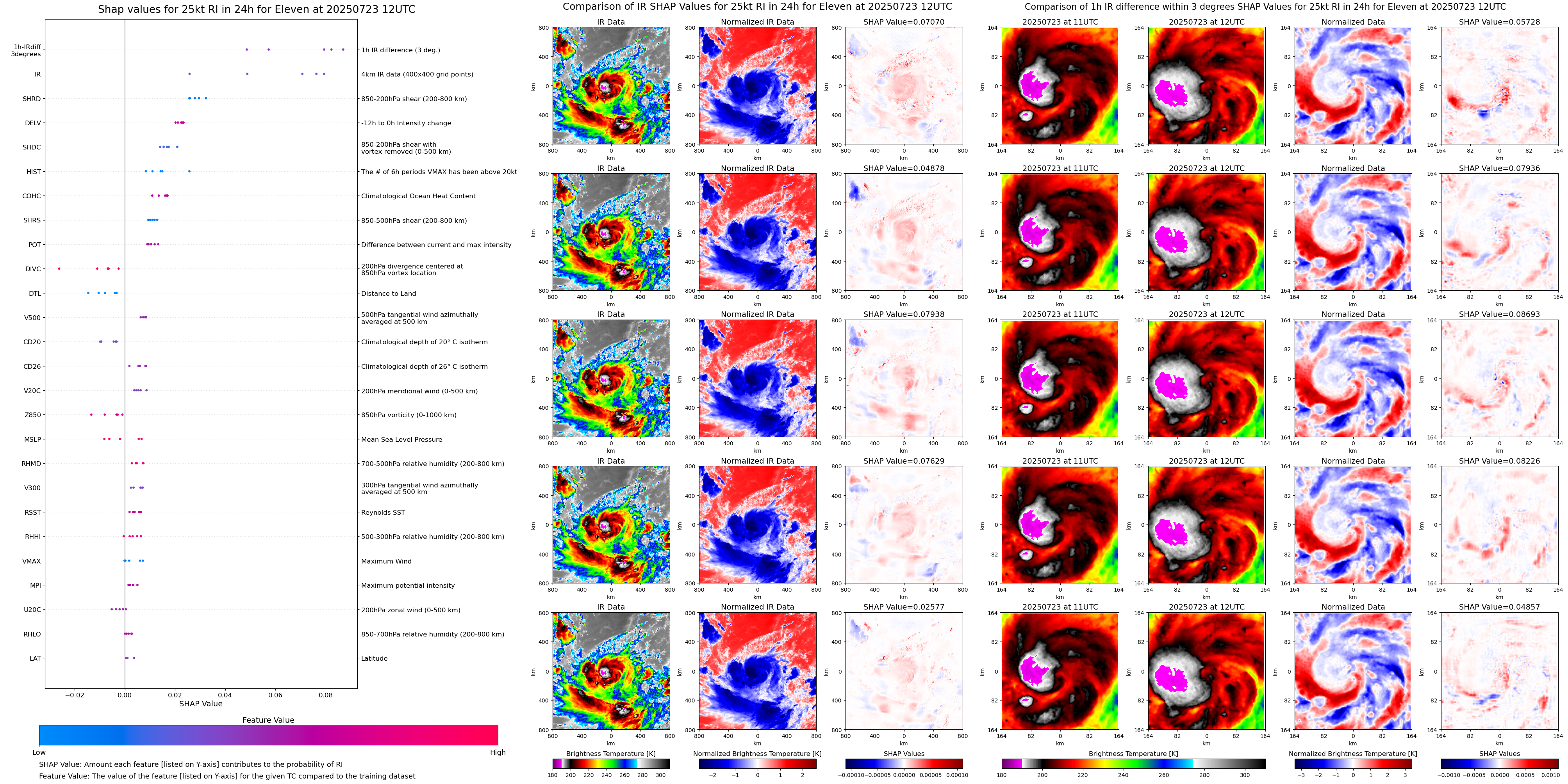 | Eleven at 07/23/25 00 UTC. Intensity = 30 kts, MPI = 9999 kts |