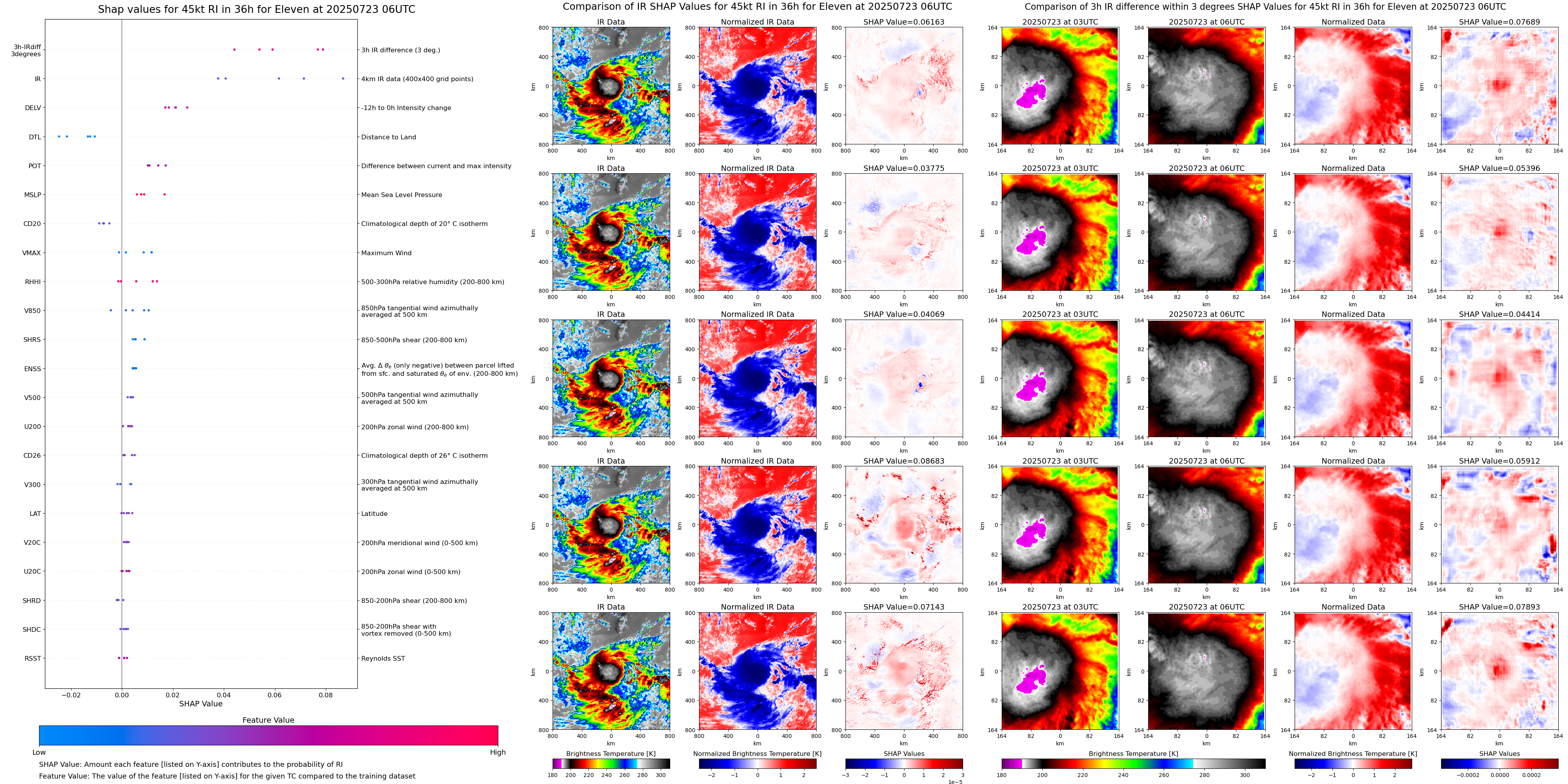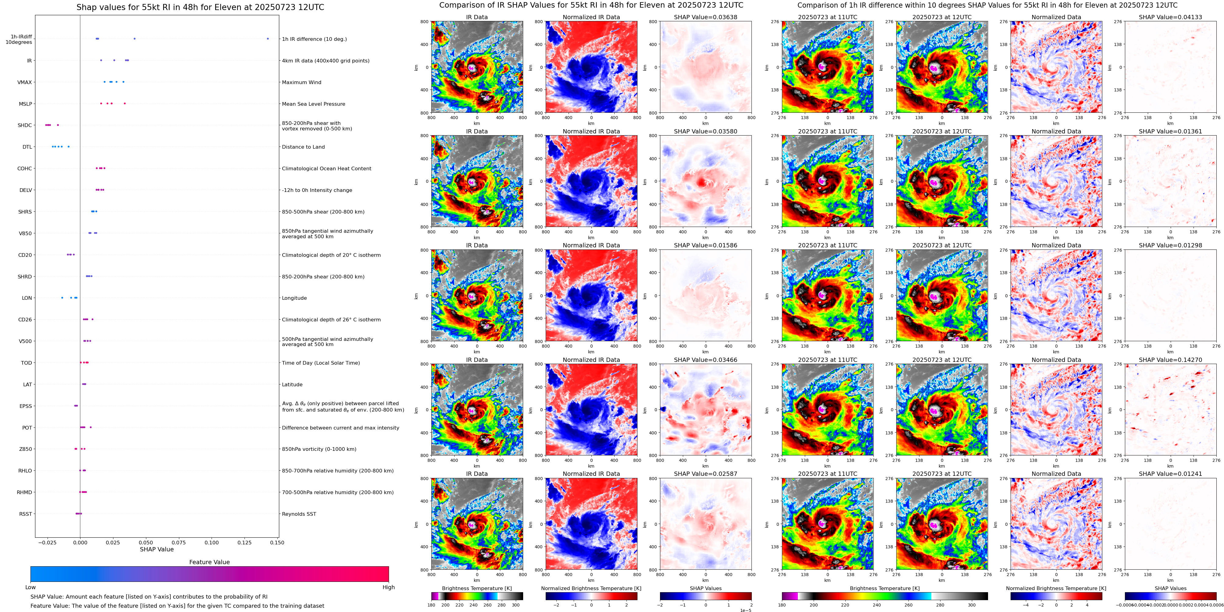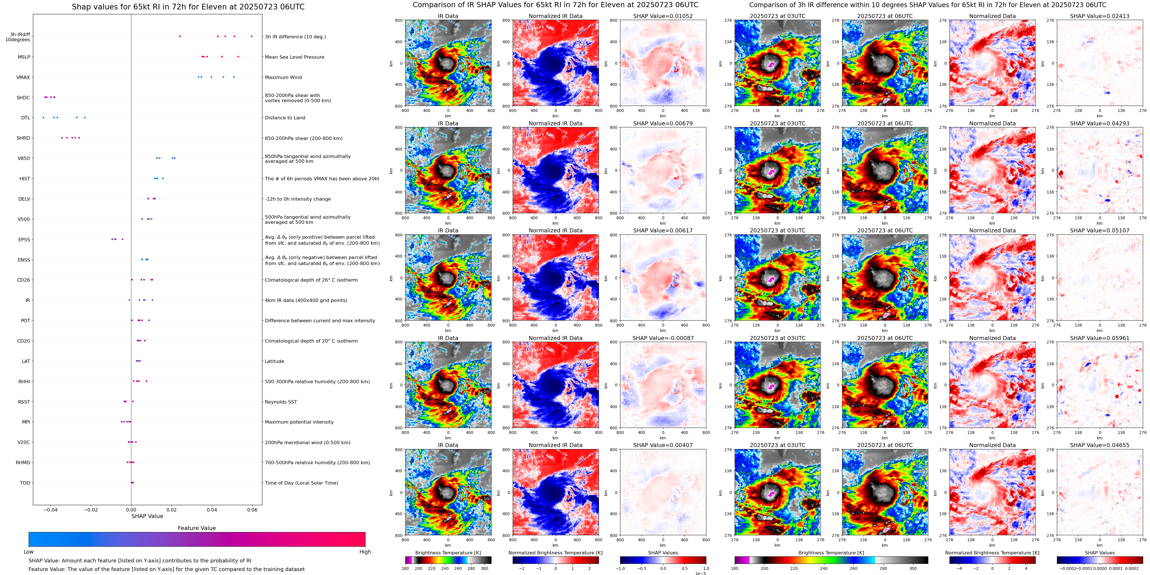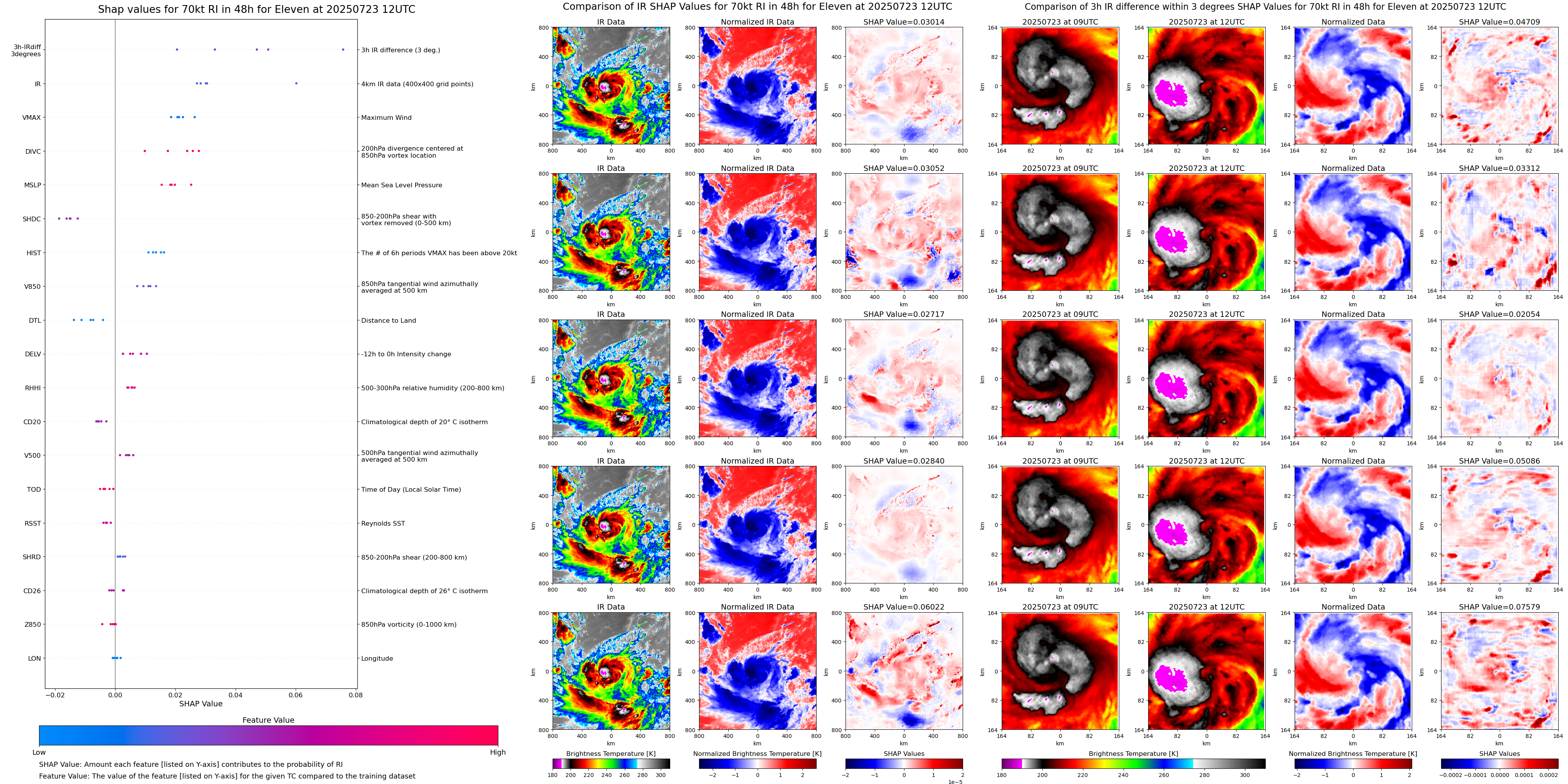 | Eleven at 07/23/25 00 UTC. Intensity = 30 kts, MPI = 9999 kts |