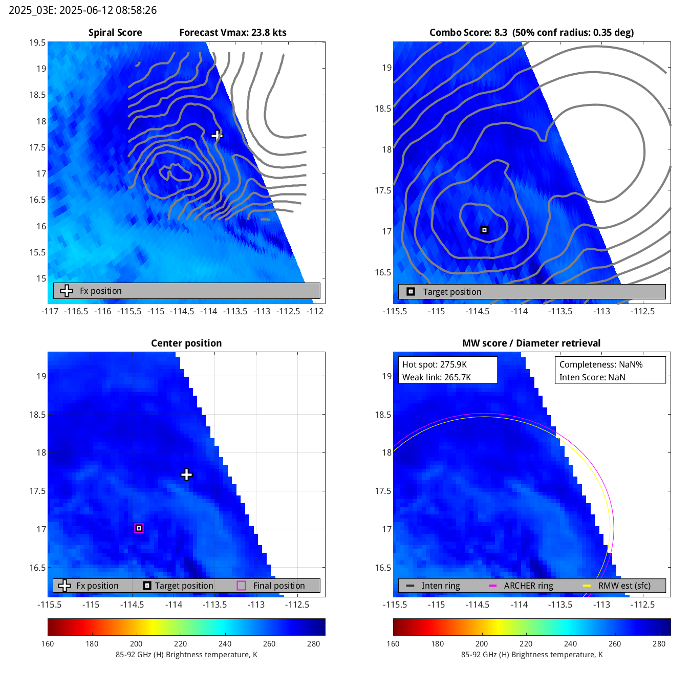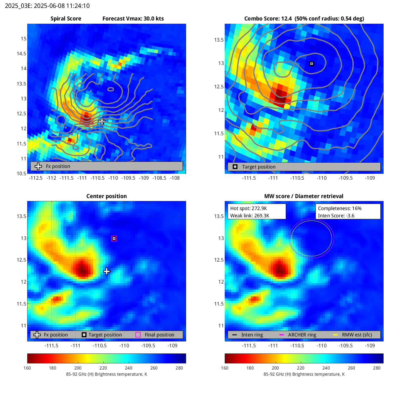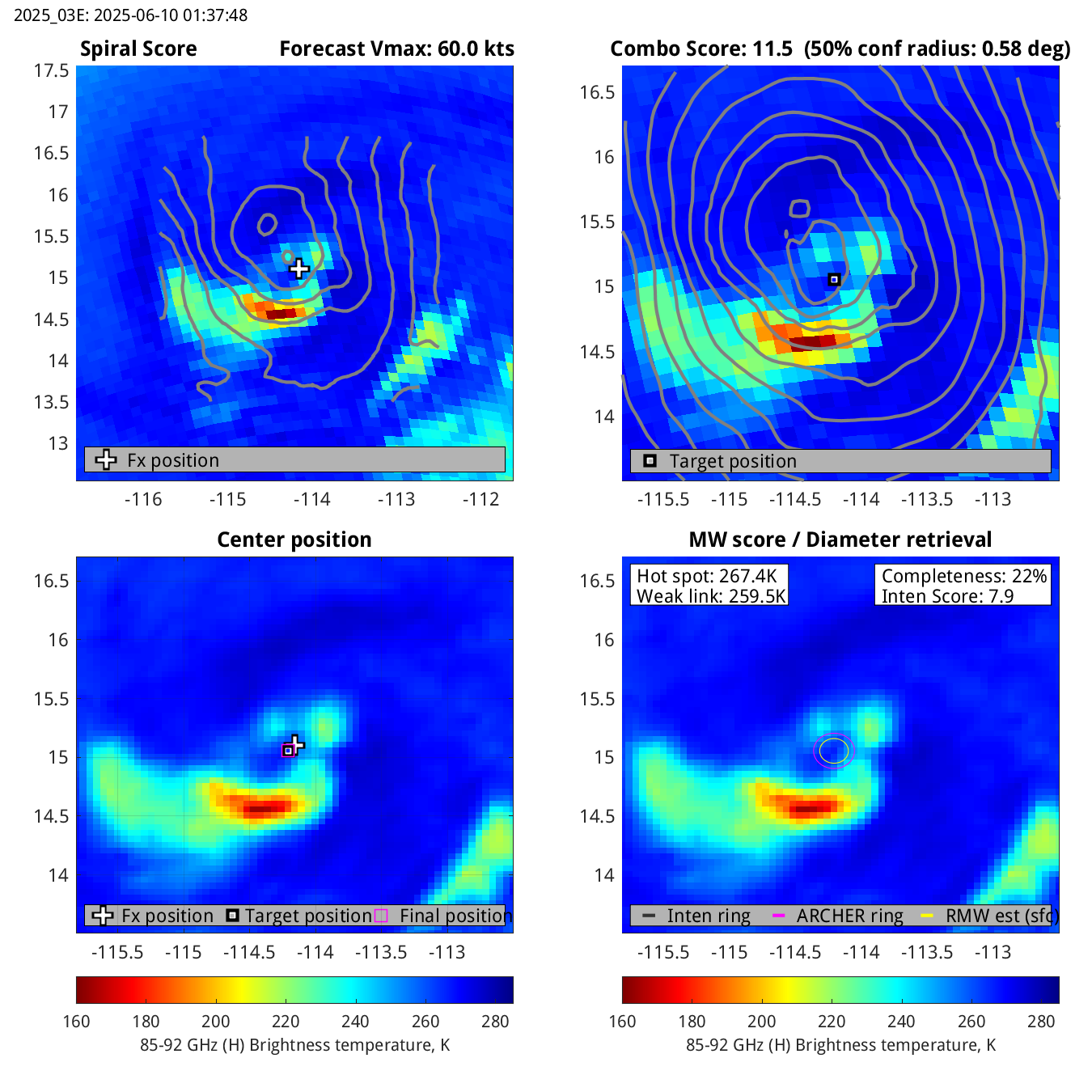 | 20250610T013748 | ssmis17_85 | 33.3 | 11.7 | 21.9% | 7.9 | 7.9 | n/a | 60.0 kts |