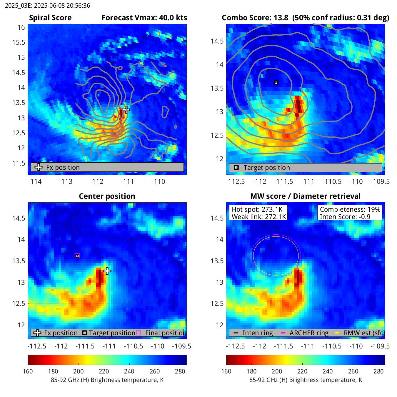 | 20250608T205636 | amsr2_85 | 111.0 | 50.6 | 19.2% | 0.9 | -0.9 | n/a | 40.0 kts |
