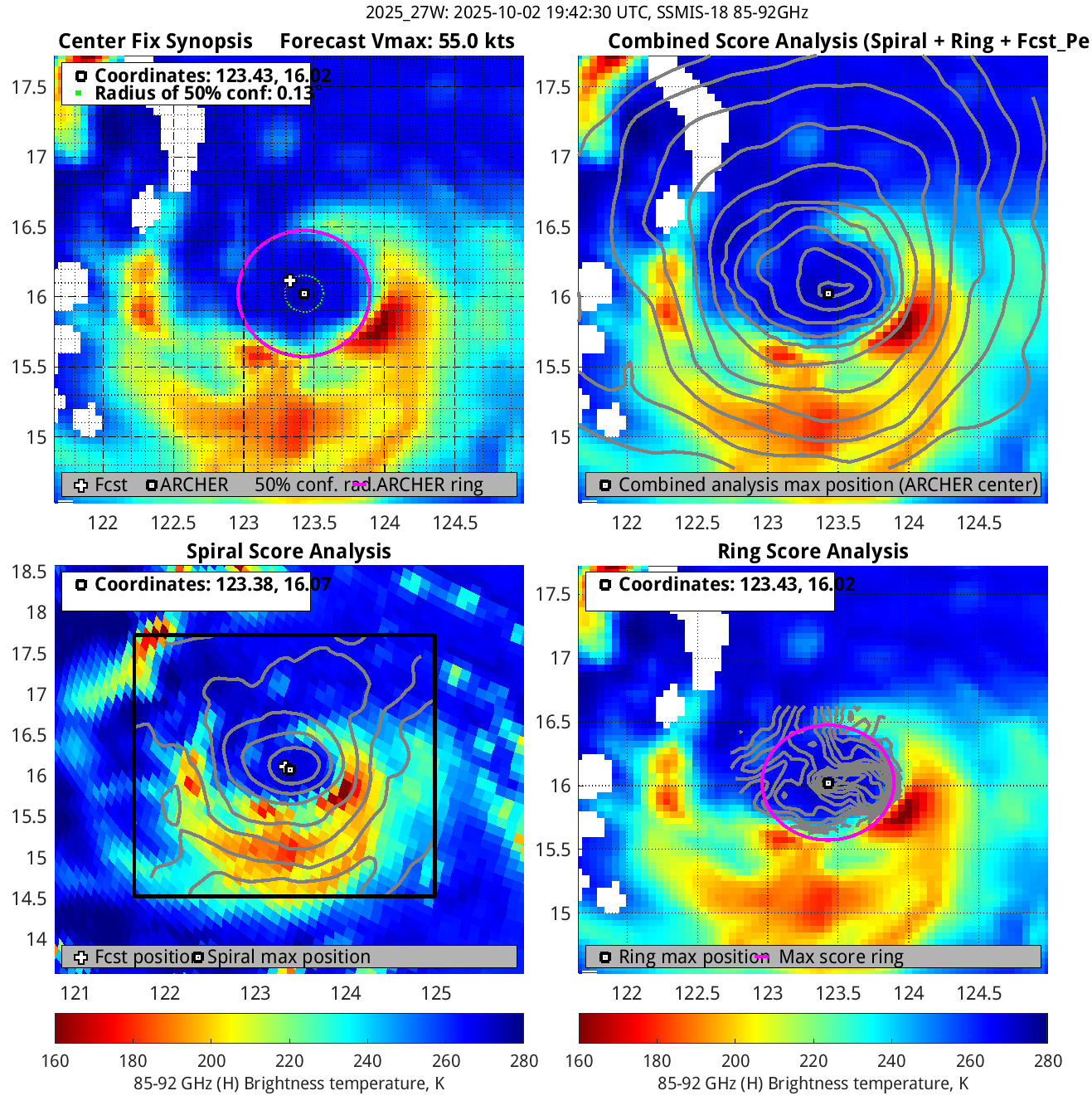 ARCHER lat/lon: Coordinates of the ARCHER algorithm, valid at the time of the observation. If no center fix could be found, then it is "***".