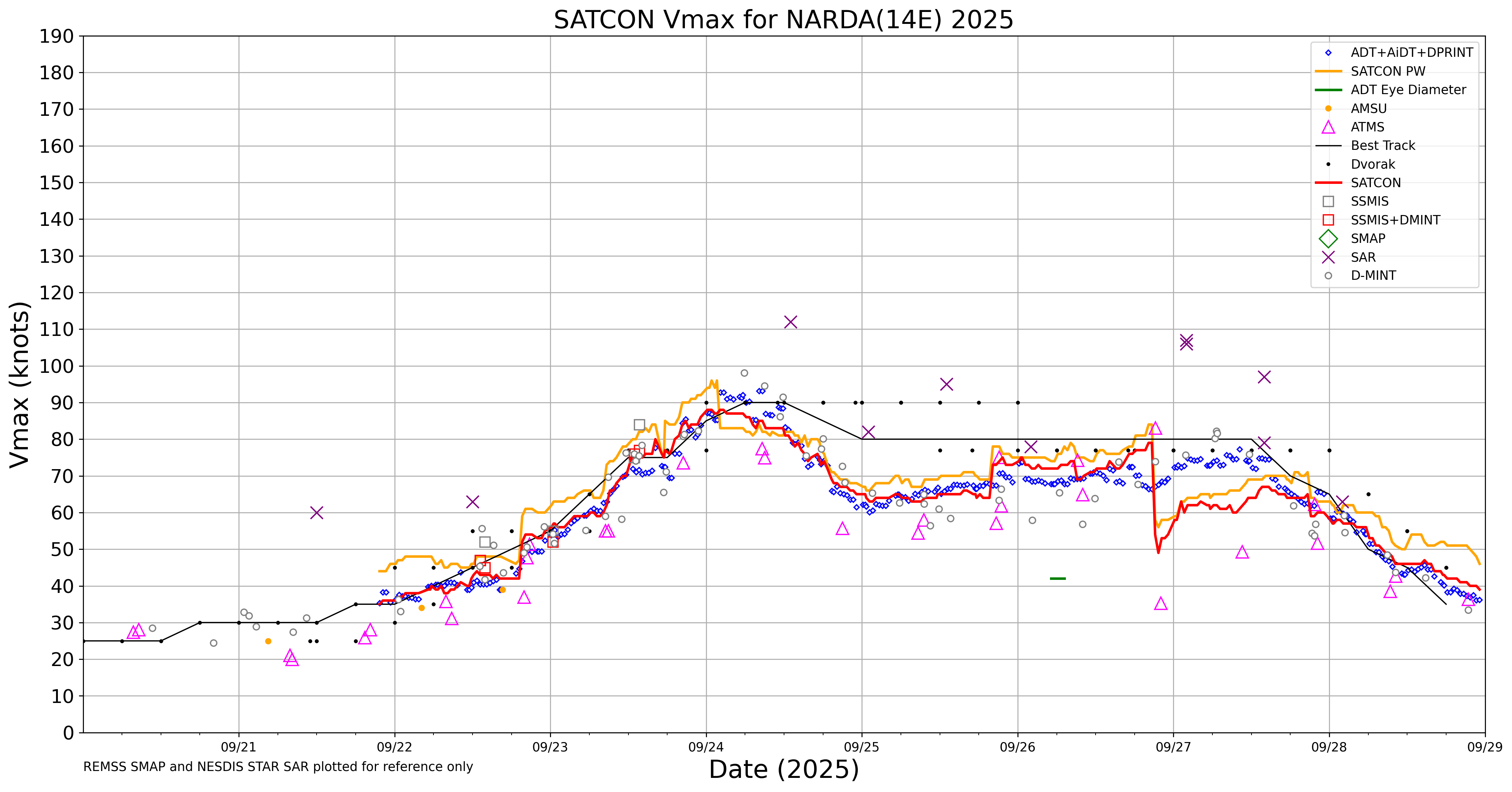 | CIMSS TROPICAL CYCLONE INTENSITY CONSENSUS FOR NARDA (14E) 2025 |